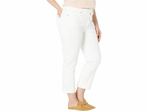 NYDJ Marilyn Straight Ankle 2 Clean Cuff Cropped Jeans Optic White 24W NWT 109