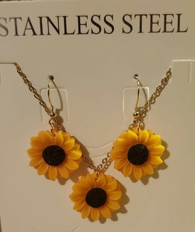 как выглядит stainless steel resin sunflower necklace earring set.Sunflower Fashion Jewelry фото