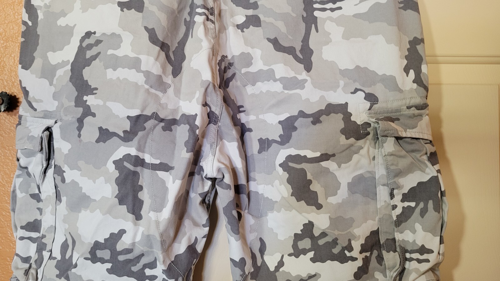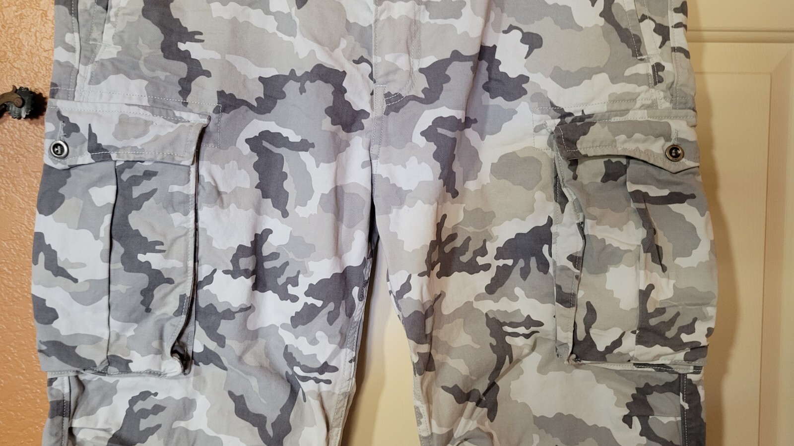 Mens Levis Gray White Tab Camoflauge Cargo Pants Size 41 Waist 27.5 Inseam