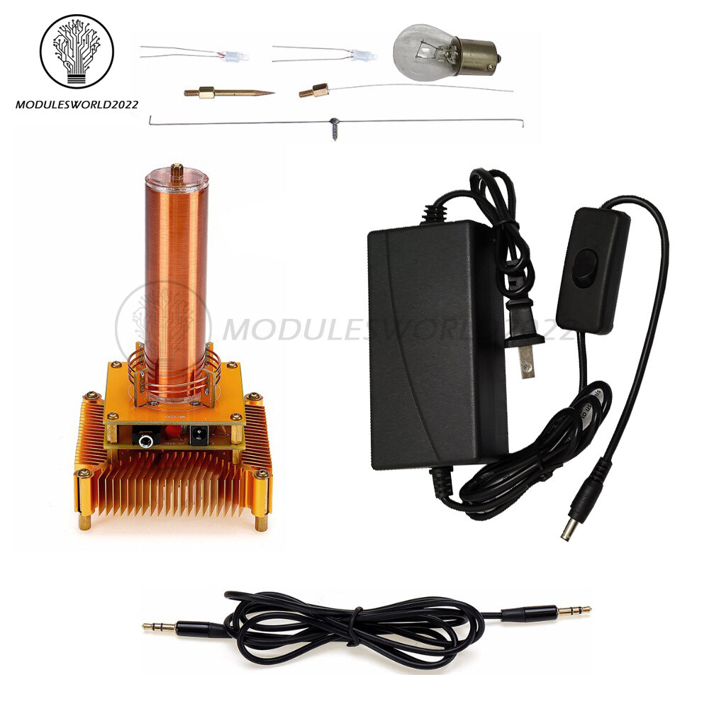 Music Tesla Coil Plasma Speaker Transmission Sound Solid Power Gold with Cable