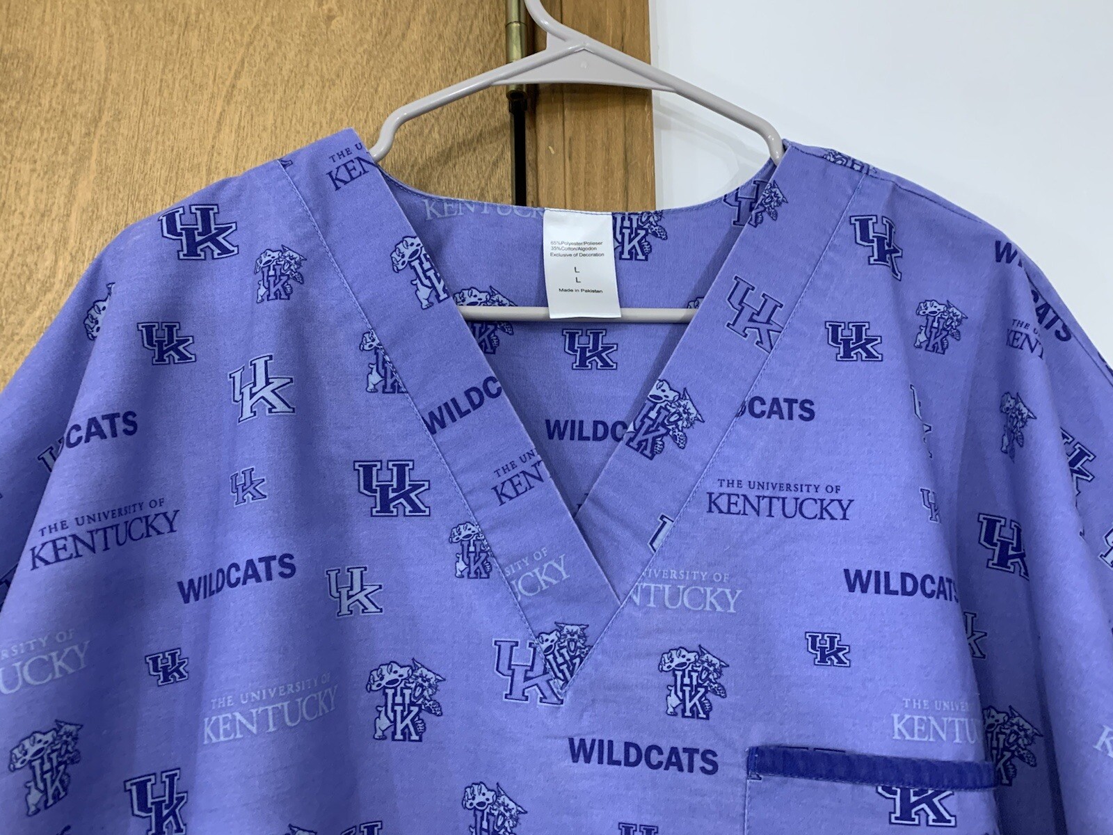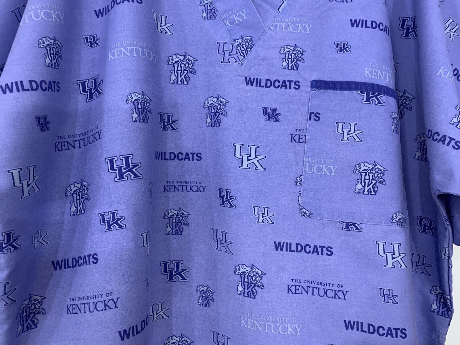 как выглядит University Of Kentucky V Neck Short Sleeve Scrub Top Pocket Side Slit Blue Large фото