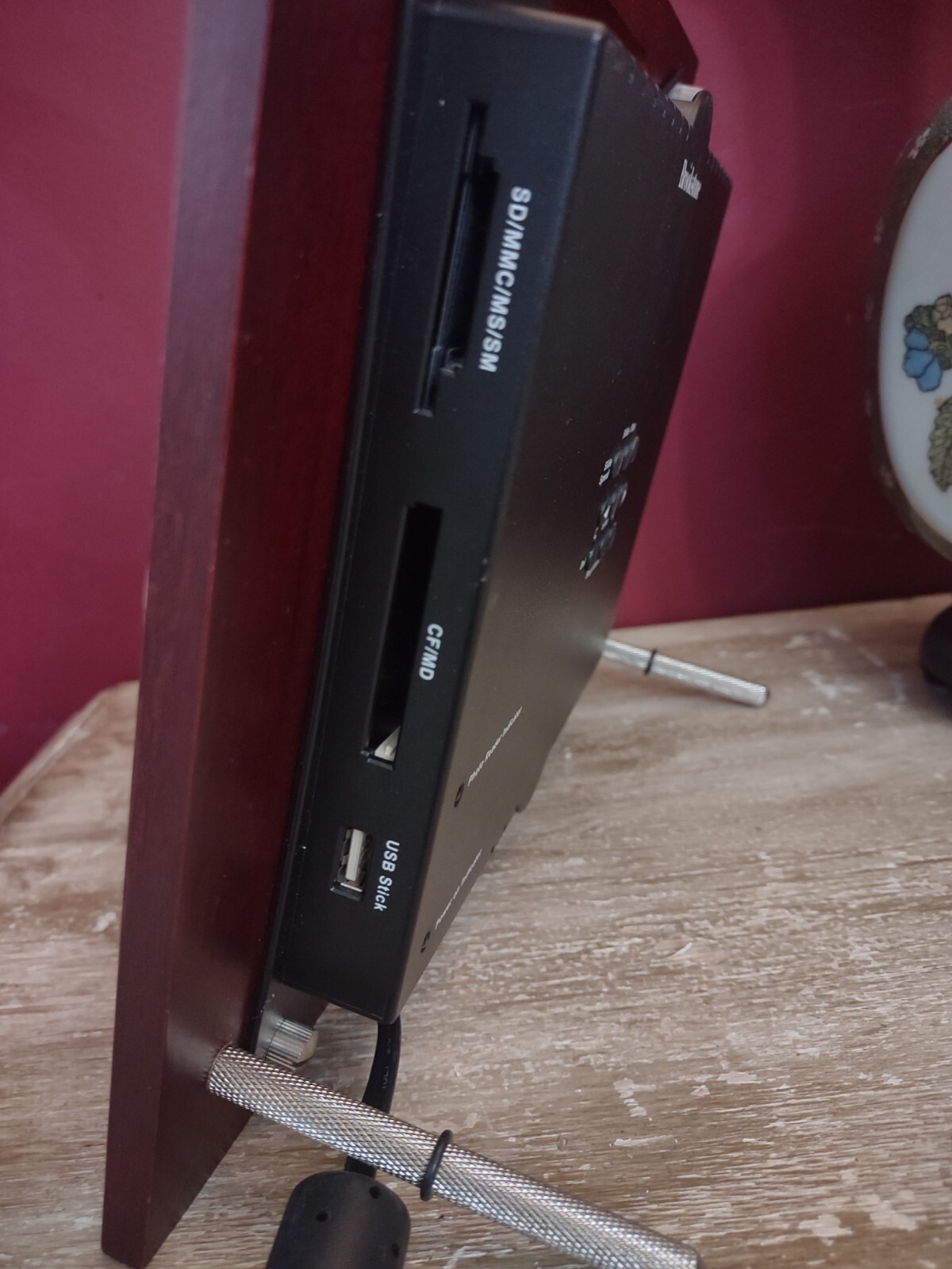 как выглядит Brookstone Digital Photo Frame - Home Color: Brown total dimensions 11 x9 in фото