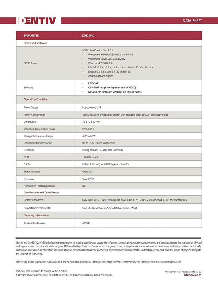 Совместимая модель: Identiv SCR3310v2 .0