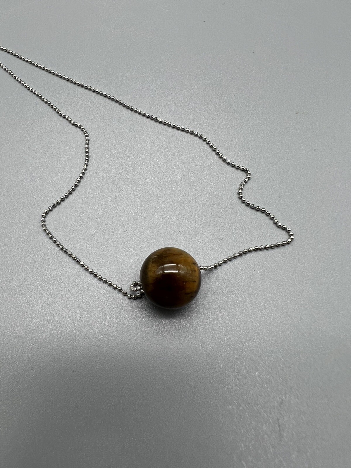 Necklace/Earring Set Gold/Brown Bead Silver Tone Chain