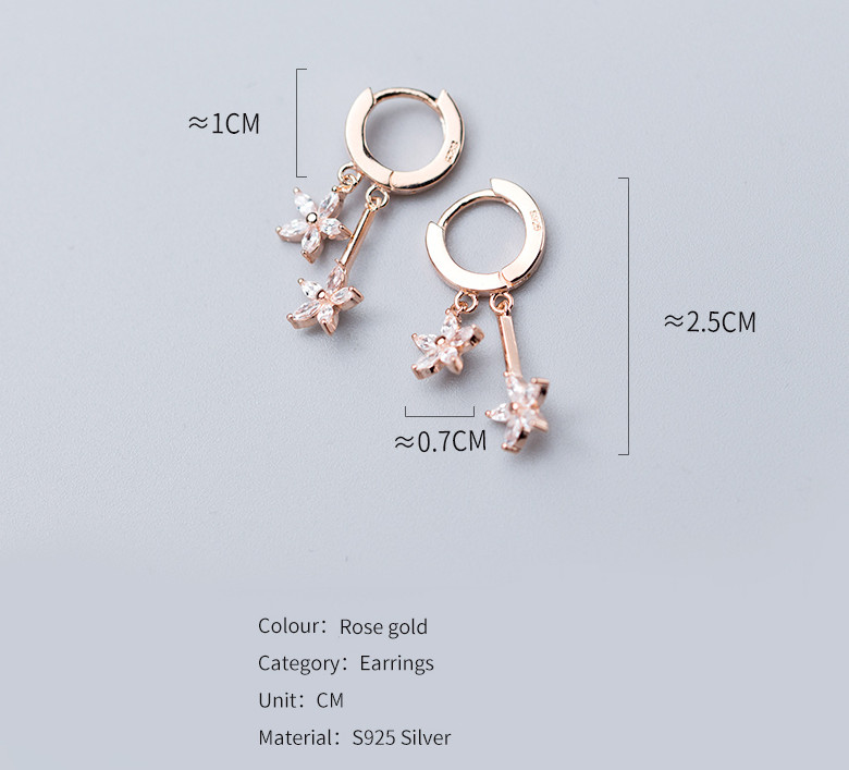 Rose Gold Plated STERLING SILVER DANGLE FLOWER Flora CZ HOOP Huggie EARRINGS D26