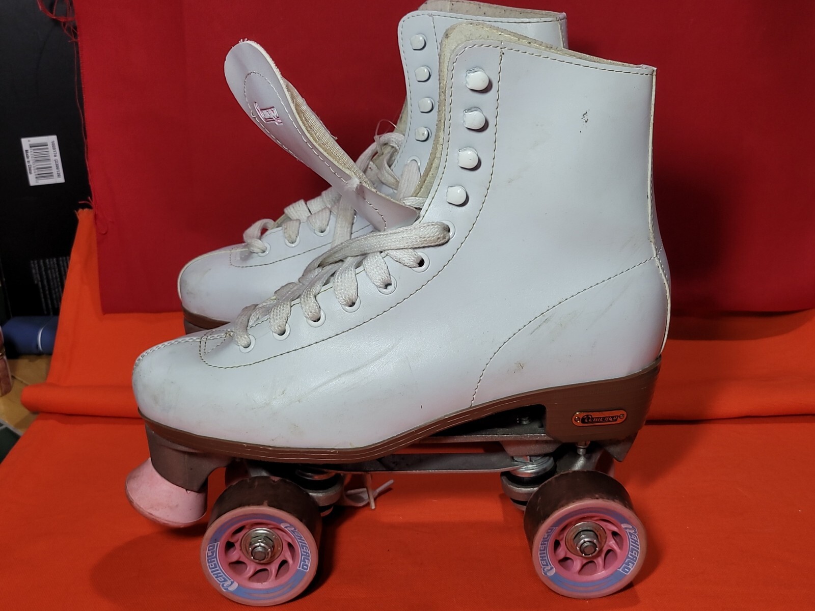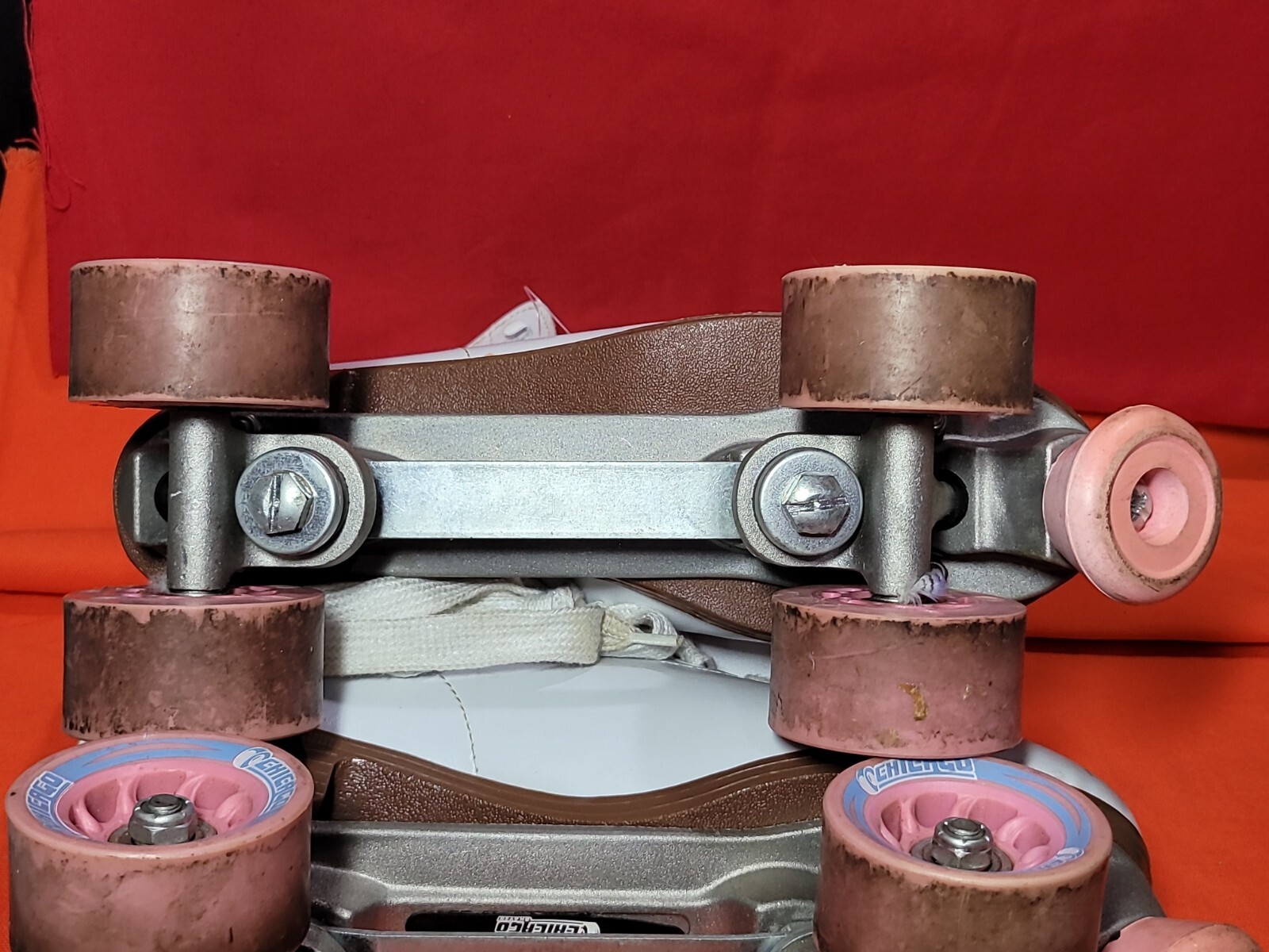 как выглядит Vintage Roller Skates White Pink Hawthorne Chicago Tilt Toe Women