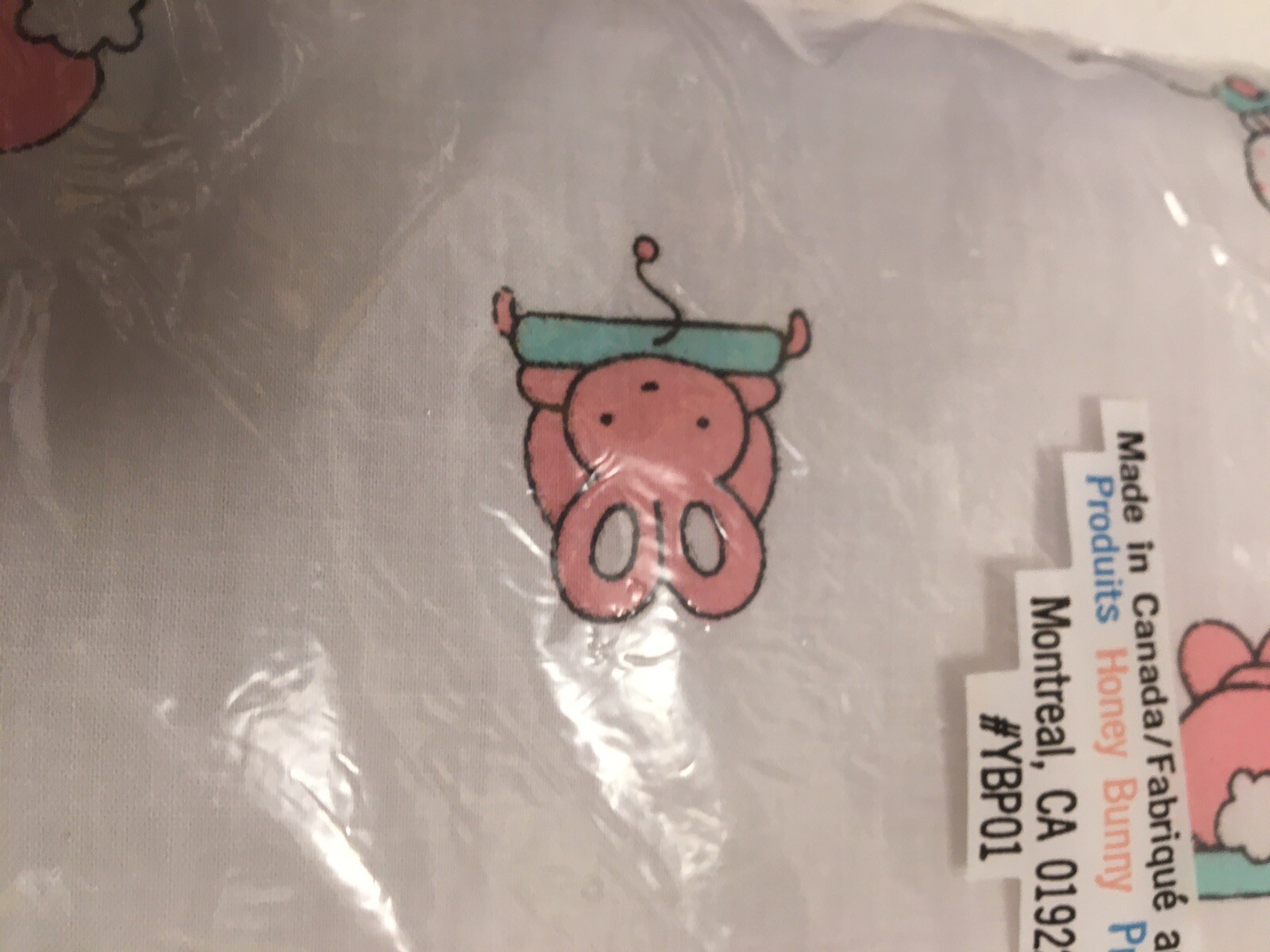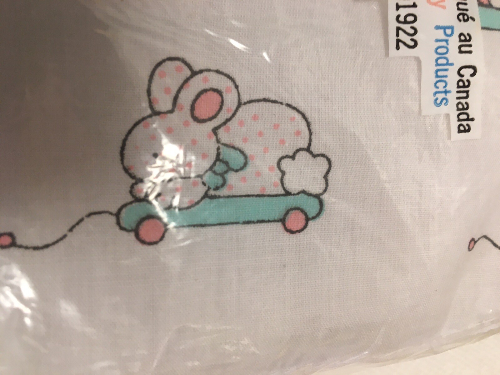 Vintage 1970 s new and sealed baby pillowcase with pink bunnies. new old stock