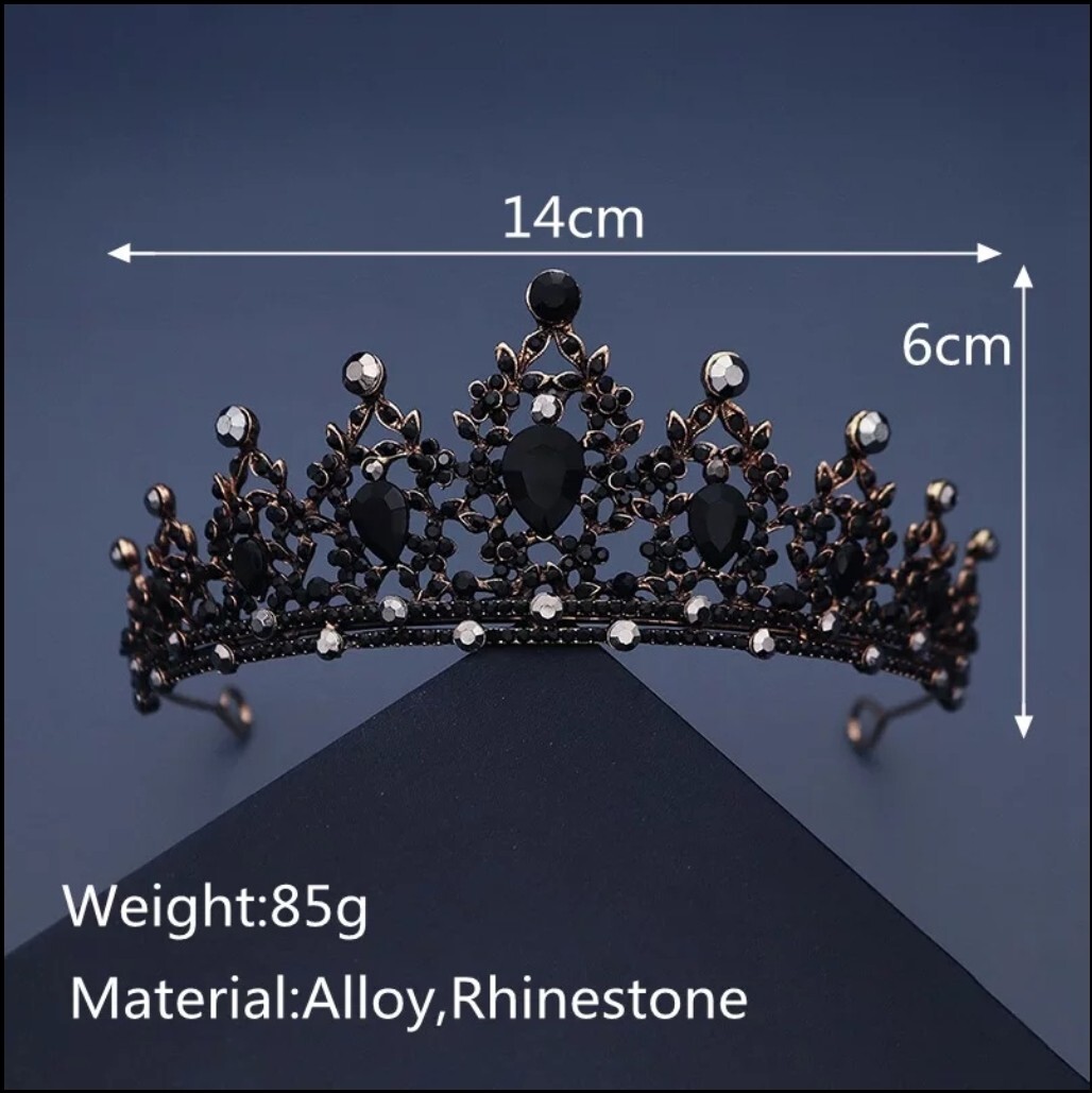 Black Crown Vintage Baroque Tiara Dark Goth Evil Queen diadem onyx edgy prom
