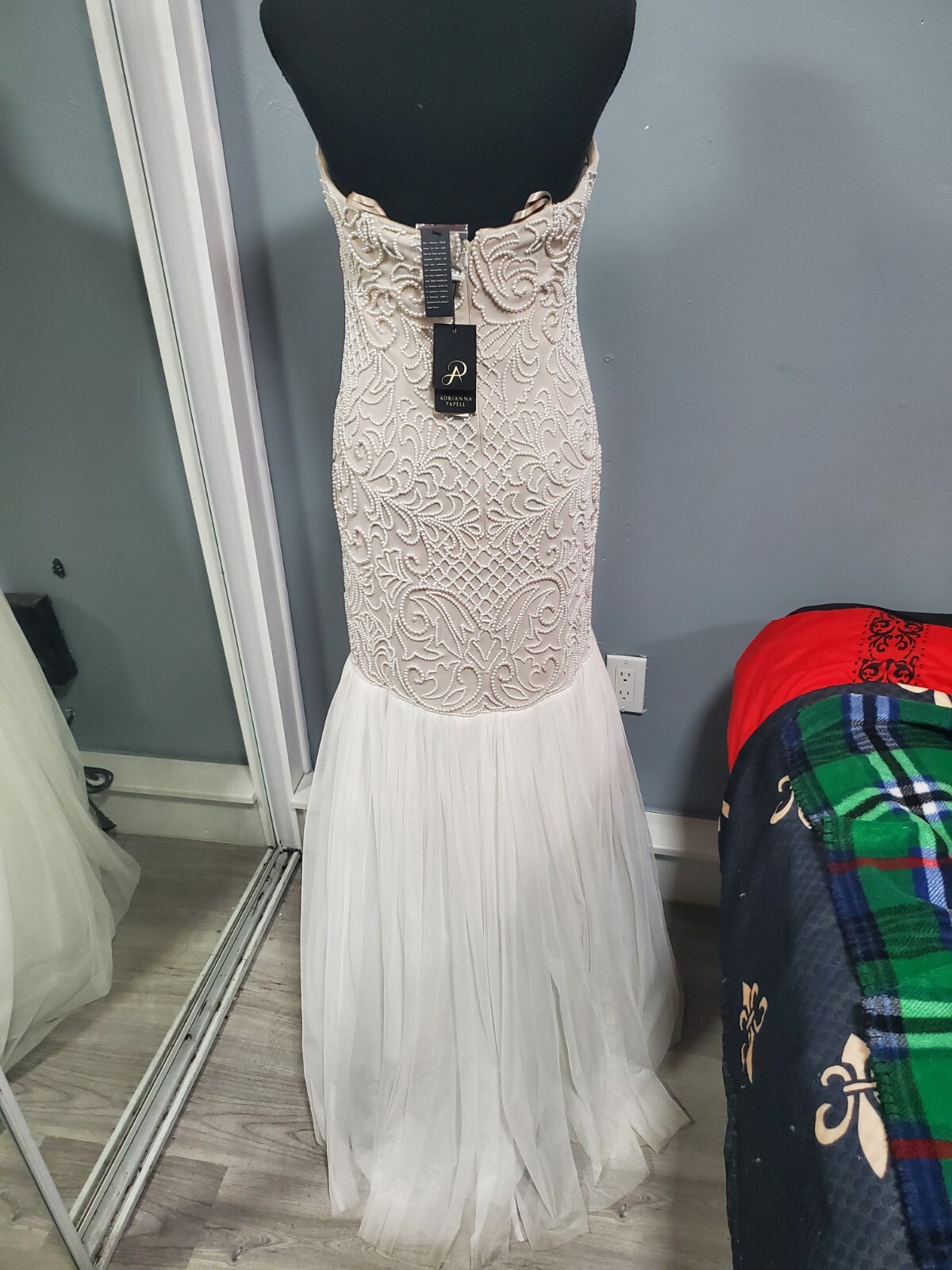 как выглядит ADRIANNA PAPELL Sleeveless Ivory Pearl Beaded Mermaid Wedding Dress sz 6 NWT фото