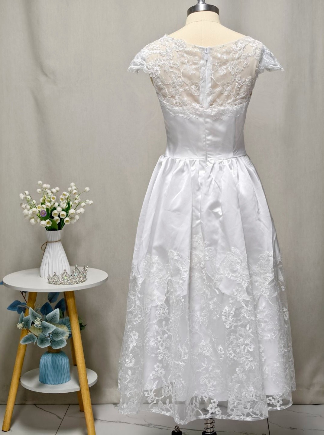 как выглядит Elegant Satin Vintage Wedding Dresses Lace Short Sleeve Ankle Length Bridal Gown фото