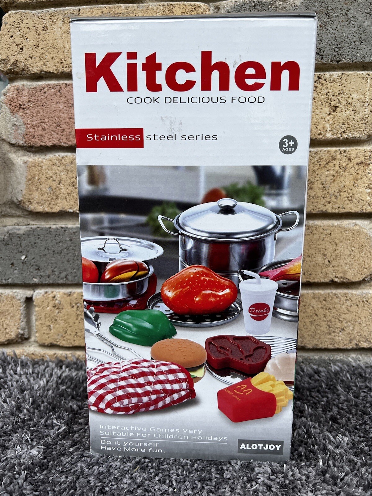 Stainless Steel Cooking Pretend Play Set Kids Kitchen Pots and Pans Set