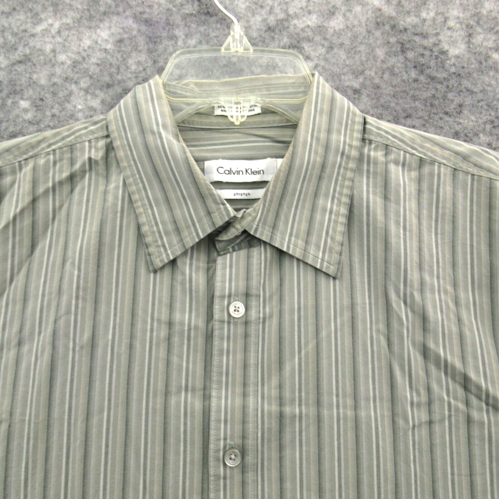 Calvin Klein Mens shirt Large Gray Button Up Long Sleeve Striped Cotton Stretch