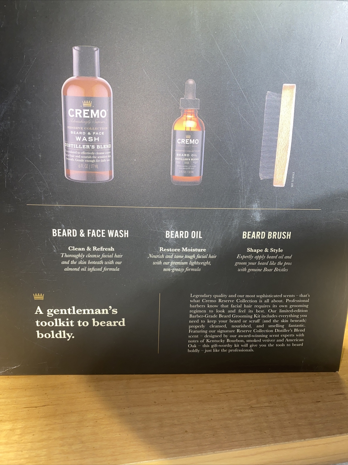 как выглядит Cremo Reserve Collection Beard Grooming Kit Set Beard Wash, Oil Beard Brush фото
