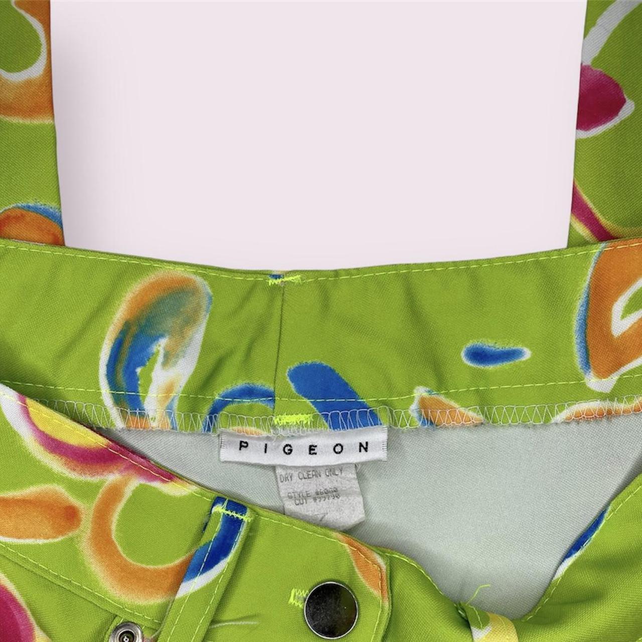 90s/y2k vintage bright green decorative pants watercolor floral patterns 7 flaw