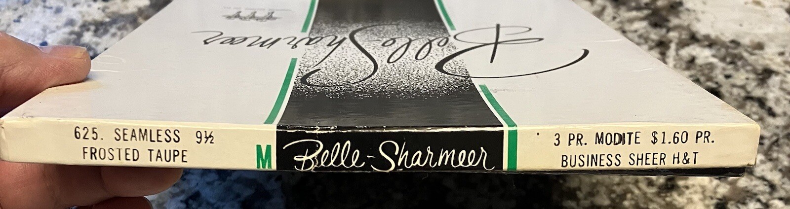 как выглядит 1 Pair VTG Belle Sharmeer Seamless Nylon Stockings, 9 1/2, Frosted Taupe, w/Box фото