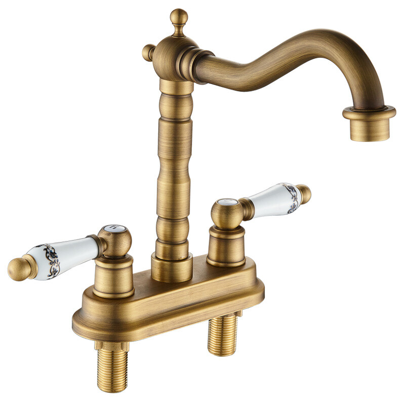 Antique Brass Two-hole Deck Mount Bathroom Sink Faucet Basin Swivel Taps 2nf425