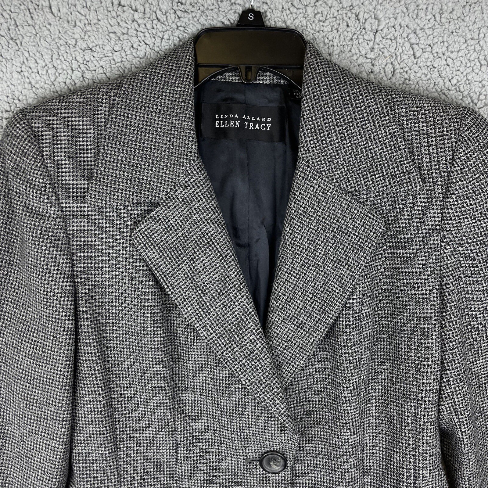как выглядит Linda Allard Ellen Tracy Womens Blazer Size 4 Gray Shoulder Pads Professional фото