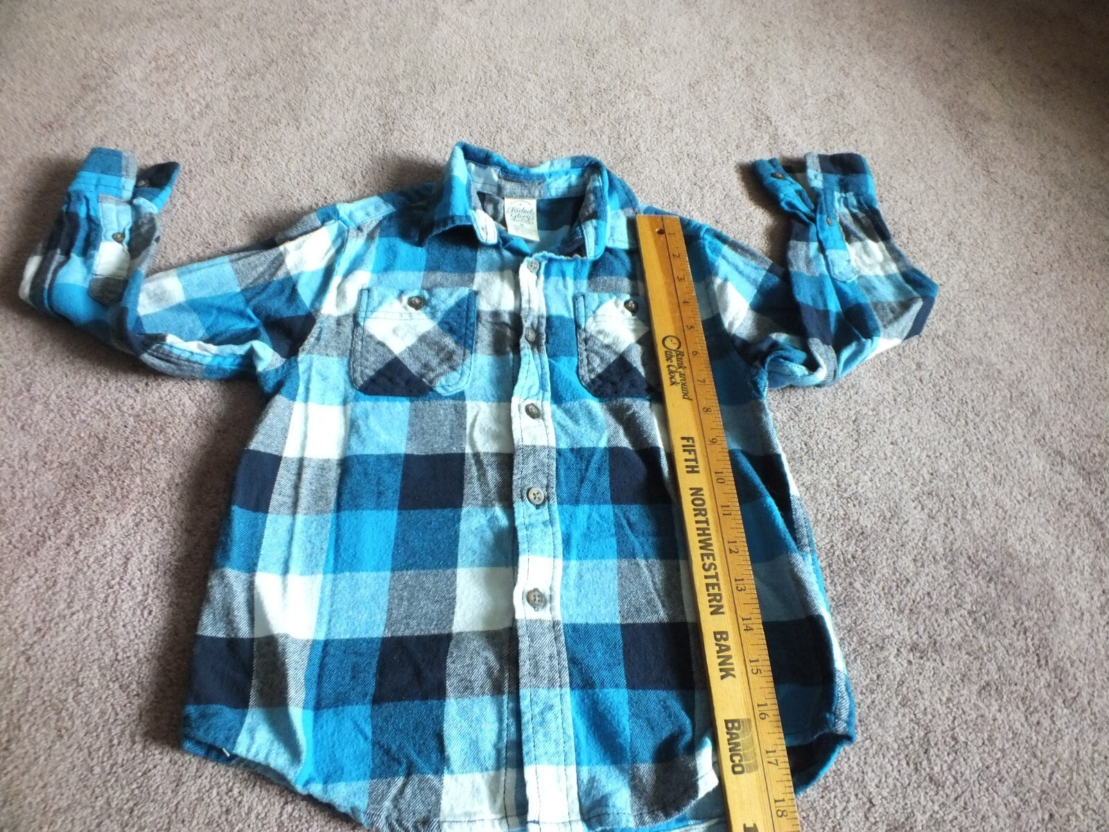 как выглядит Upcycled Repurposed Flannel Shirt Kids Size M 8 Puppys in Car Applique фото