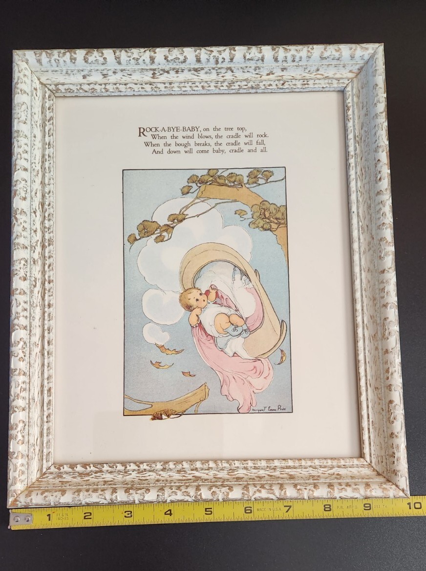 как выглядит Vintage Framed Print Nursery Rhyme ROCK-A-BYE-BABY 12"x10" Margaret Evans Price фото