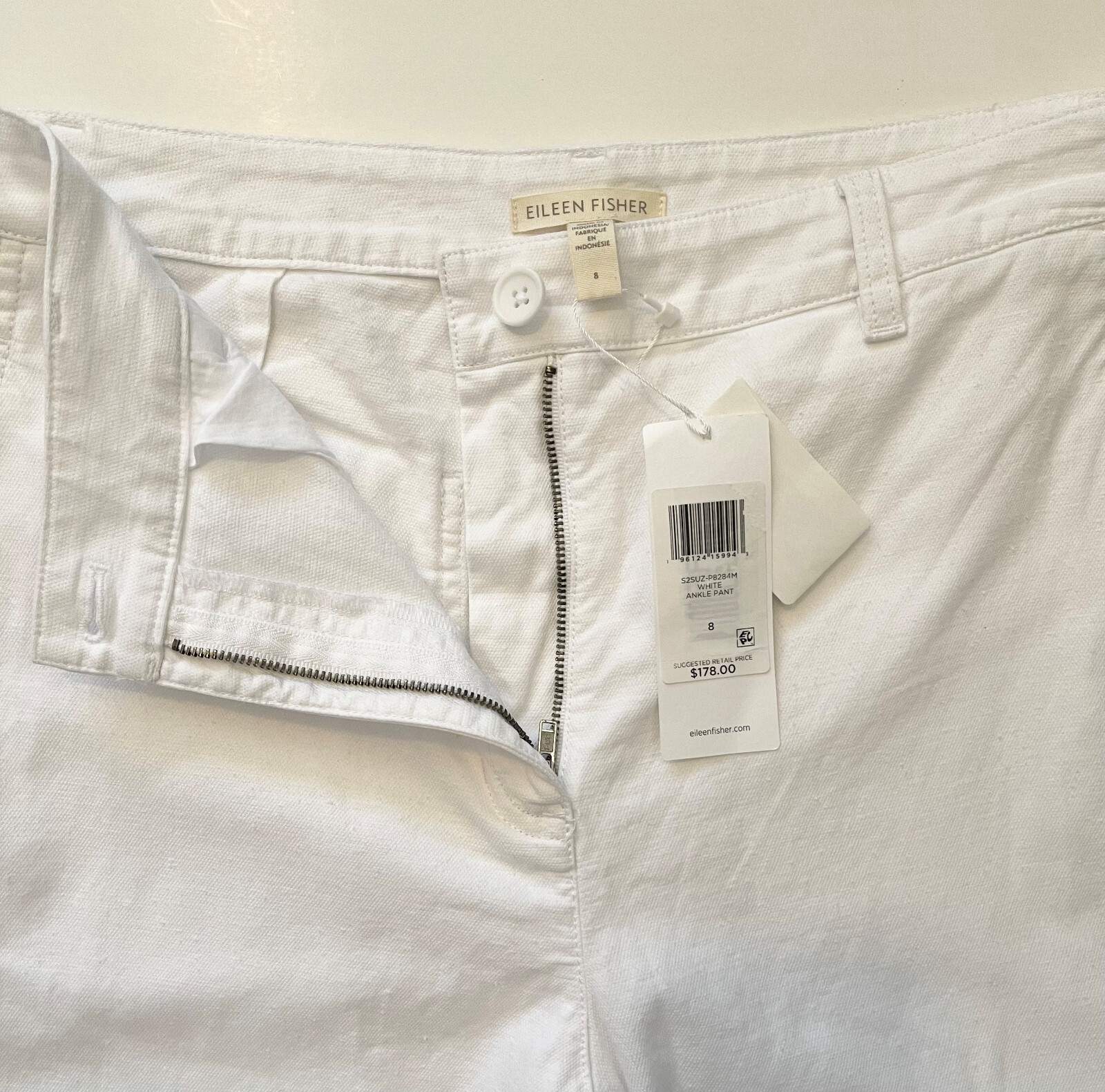 NEW w/Tags Eileen Fisher White Organic Cotton/Hemp Blend Ankle Pant-8