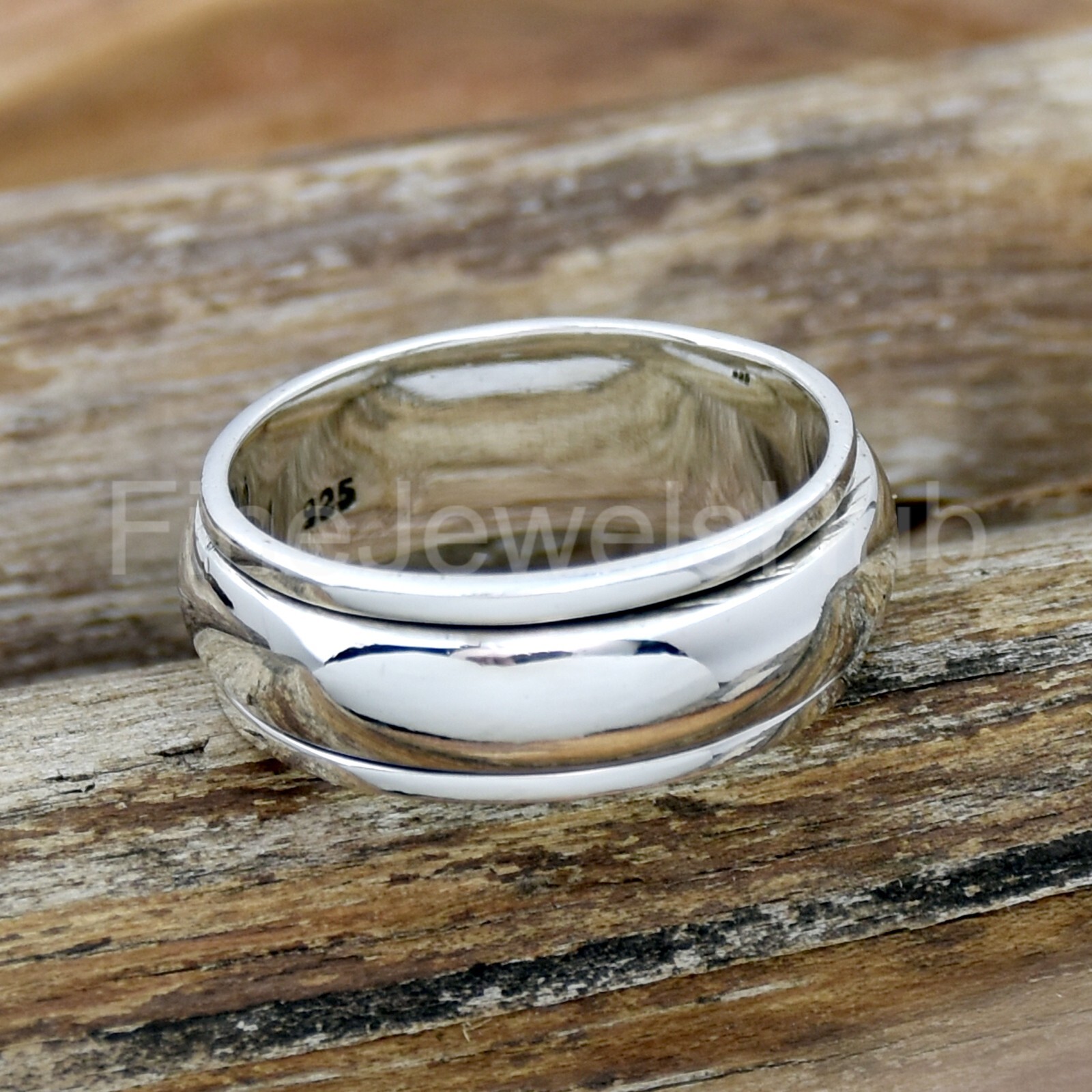 как выглядит 8 mm Spinner Band Ring, 925 Sterling Silver Ring, Wide Band Ring, Spin Ring фото