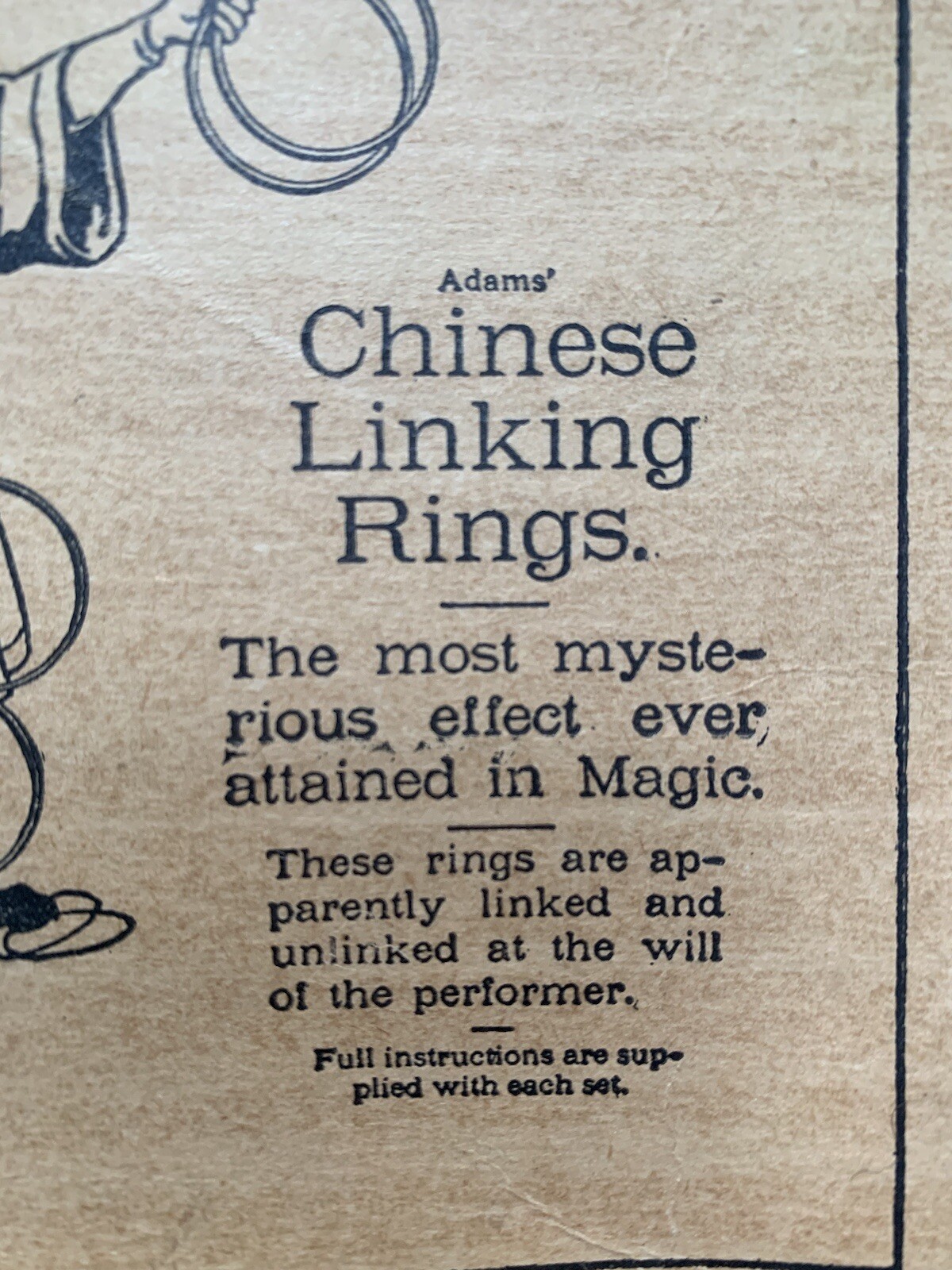 Vintage Magic Trick: Adam's CHINESE LINKING RINGS IN BOX - antique