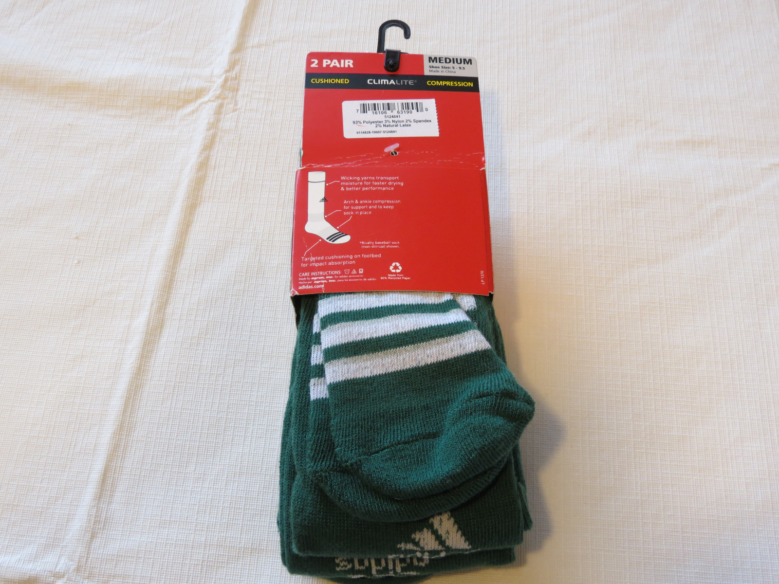 Adidas Climalite Unisex Rivalry Baseball 2 pair socks S 13C-4Y otc Forest Green