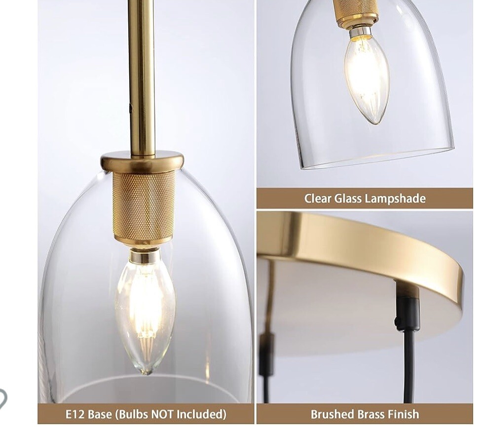 NEW 3 Light Clear Glass Pendant Light, Adjustable Cluster, Brushed Brass/Glass