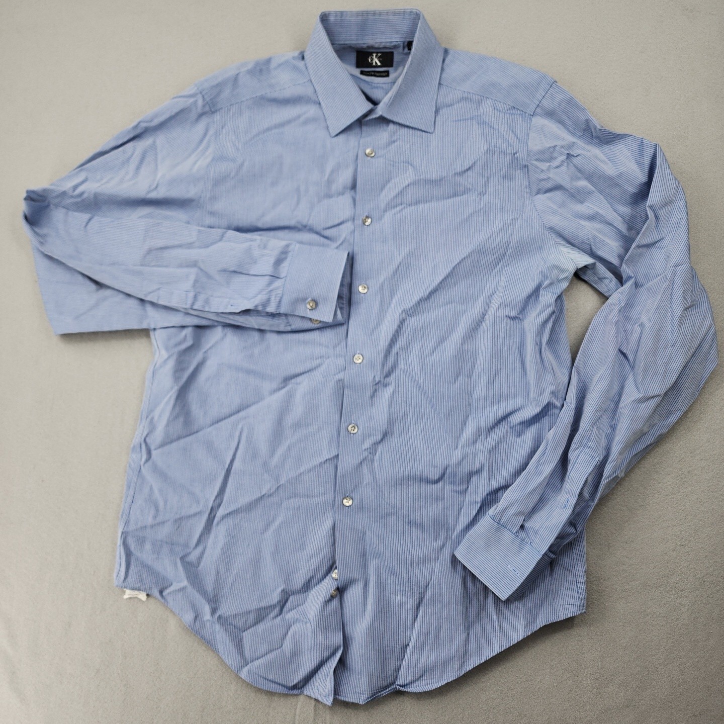 Calvin Klein Slim Fit Non Iron Long Sleeve Regular L 16 Blue Pinstripe Shirt