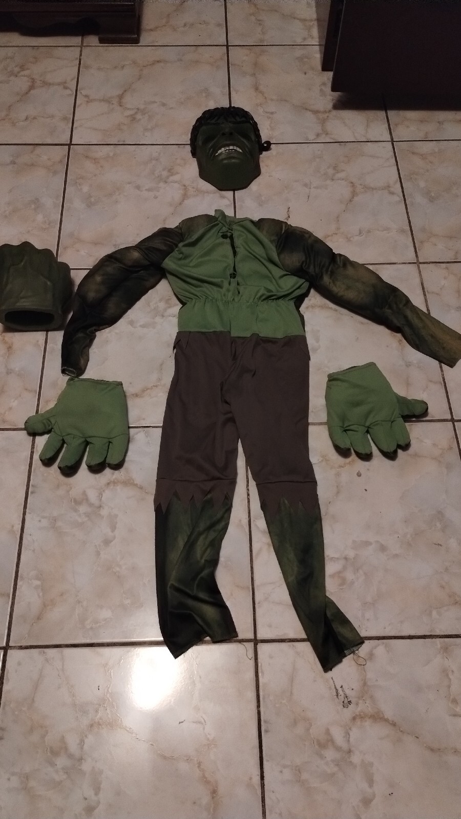 как выглядит Marvel Avengers Hulk Muscle Padded Youth Costume Medium 7-8 Gloves Battery Mask фото