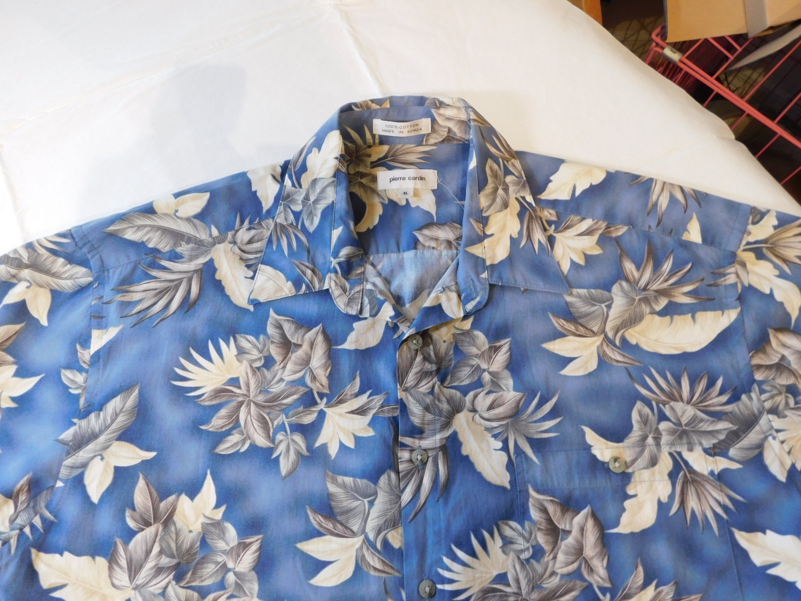 Mens Pierre Cardin XL xlarge SS button up shirt cotton Blue w/ Leafs EUC