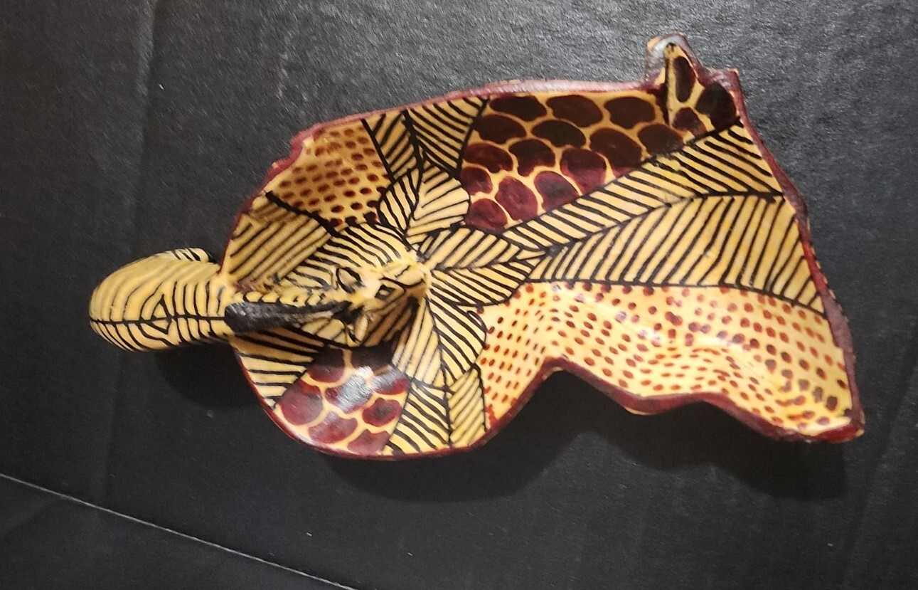 Vintage Hand Carved Hand Painted African Wood Zebra Bowl, Key Holder 6.5