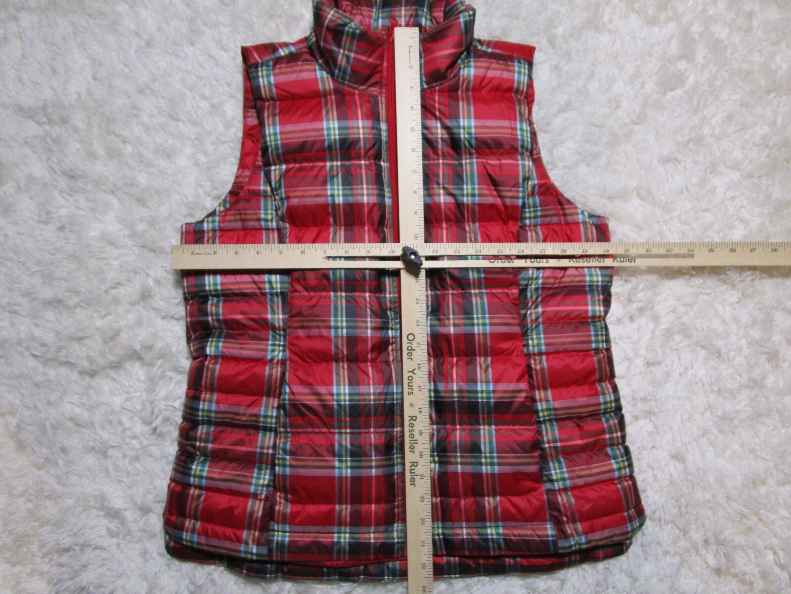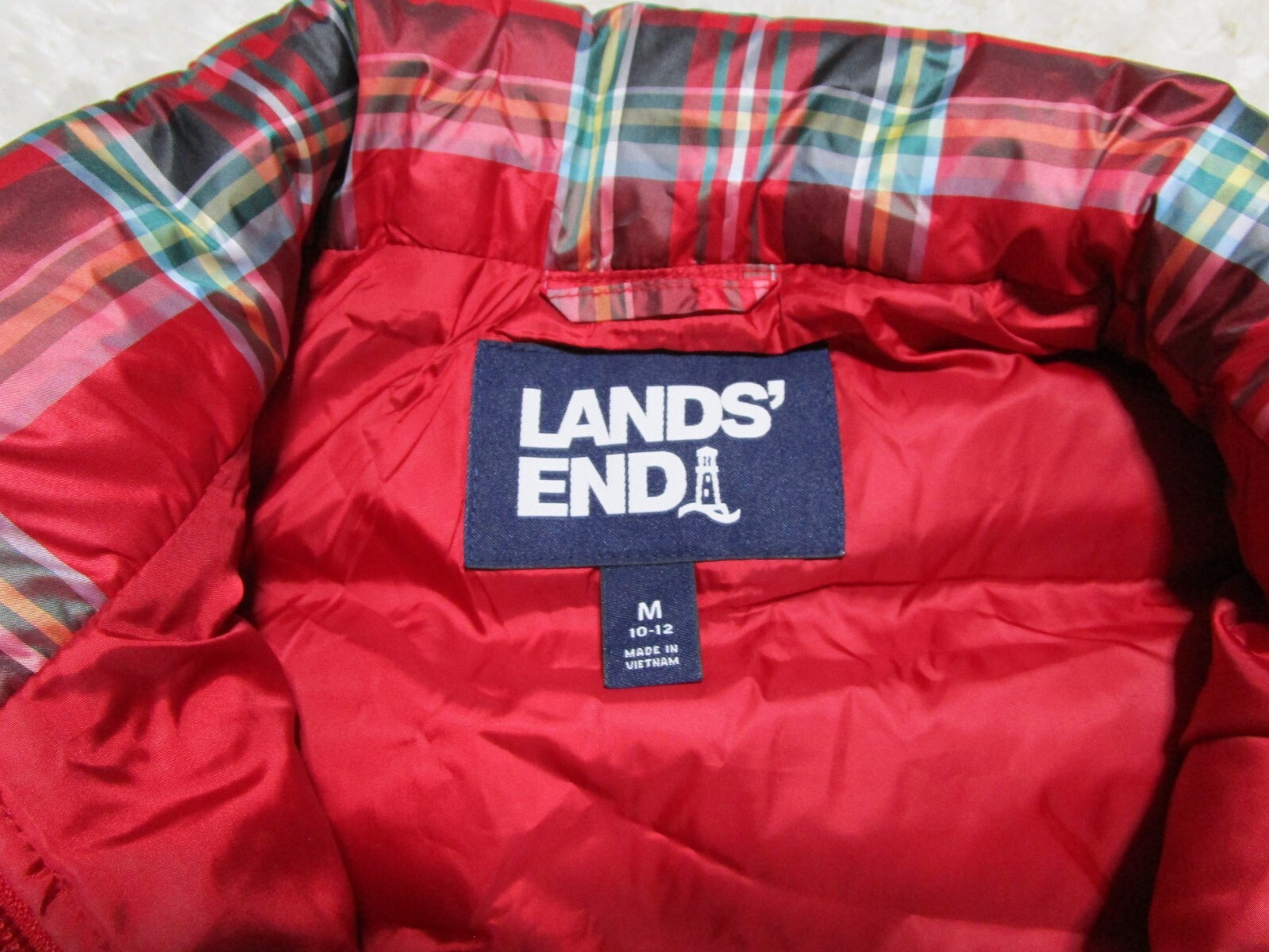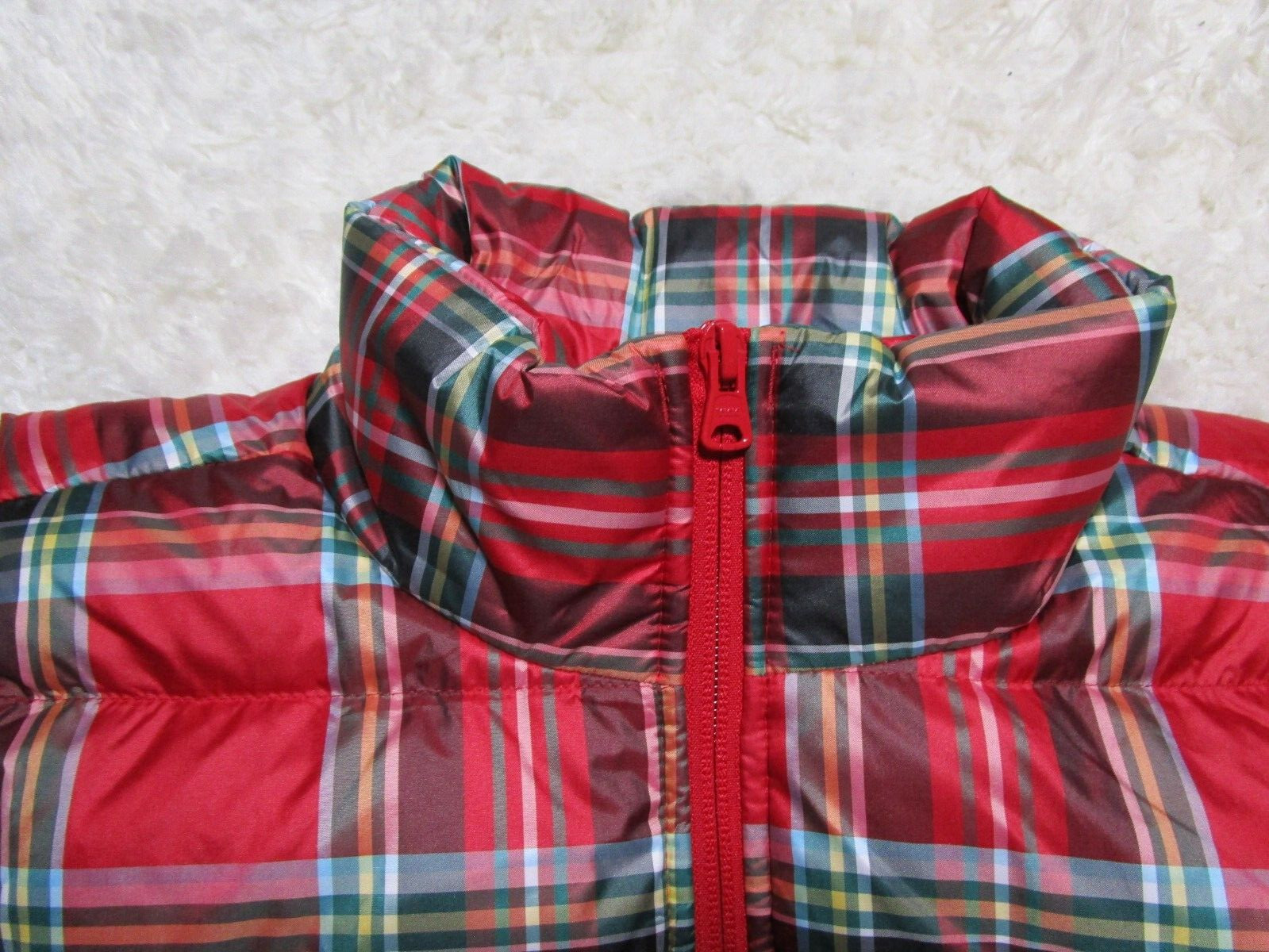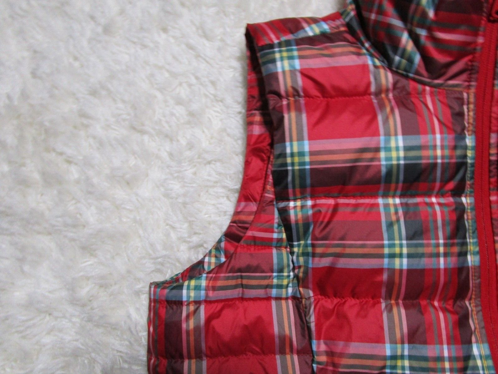 как выглядит Lands End Vest Youth Boys Meduim 10-12 Red Plaid Full Zip Outdoor фото