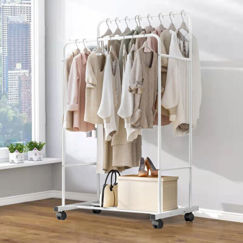 Double Rod Metal Clothing Garment Rack on Wheel Heavy Duty Portable Closets