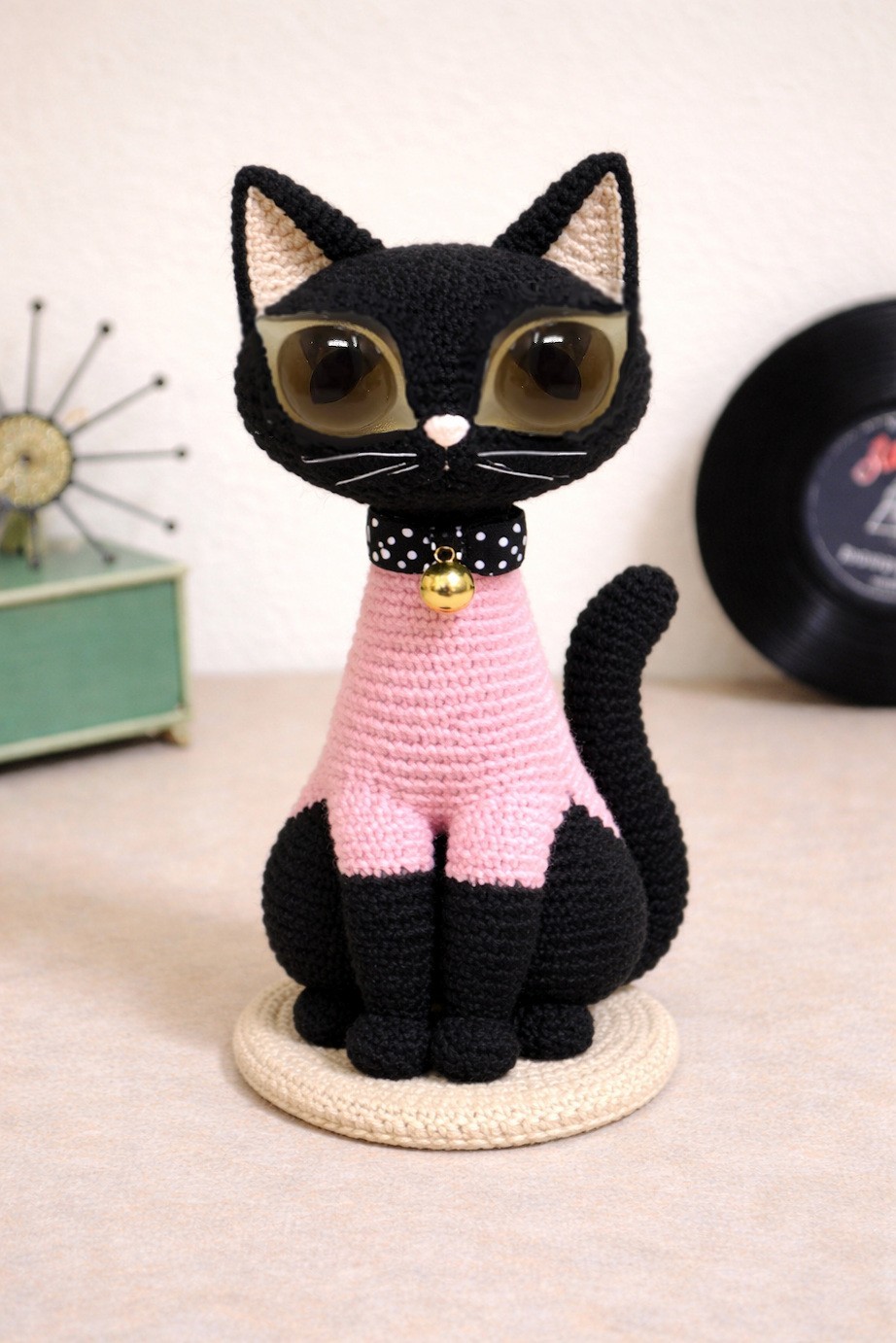 как выглядит 4 pr VTG Zims Brown Kitten Cat Eyes Plastic Safety Amigurumi Craft Crochet Doll фото