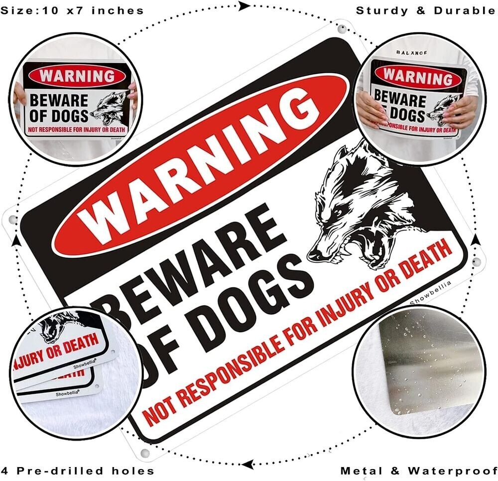 2 Pack Beware of Dog Sign Metal Aluminum Dog Warning Signs Reflective UV Prot