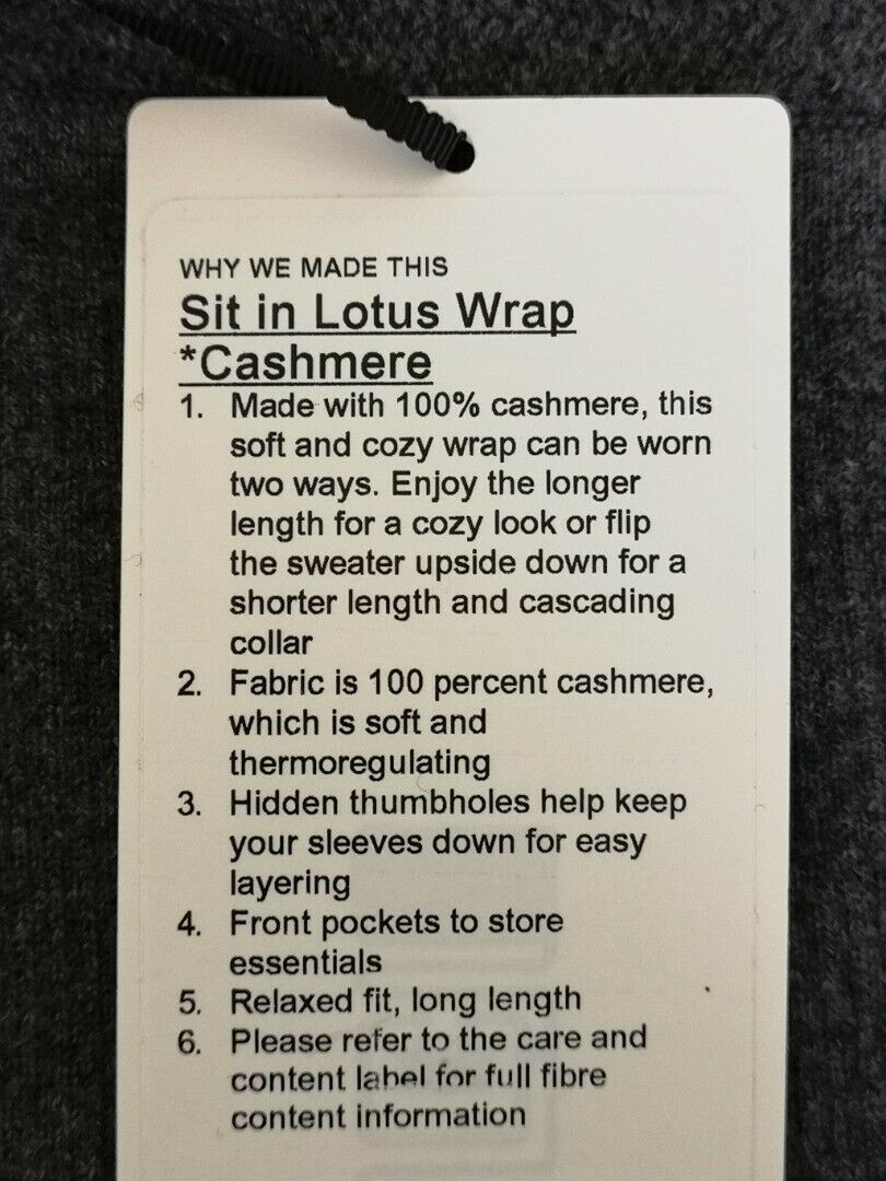 как выглядит NWT LULULEMON Dark Grey 100 Cashmere Sit In Lotus LS Wrap Sweater Cardigan 2 фото
