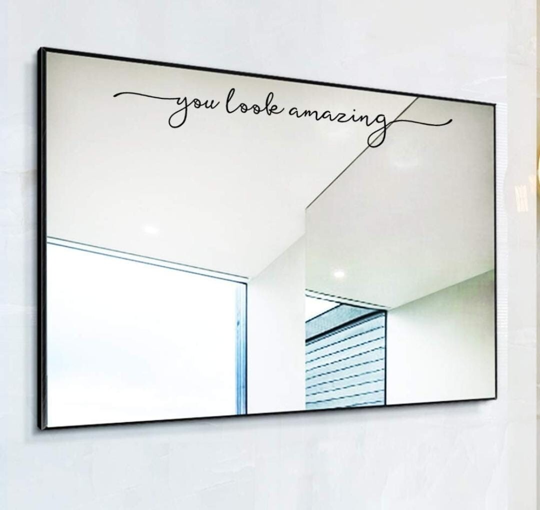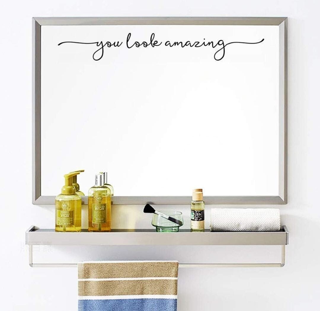 как выглядит You Look Amazing Mirror Decal Vinyl Decal Bathroom Decor Shower Door Decal 18x2. фото