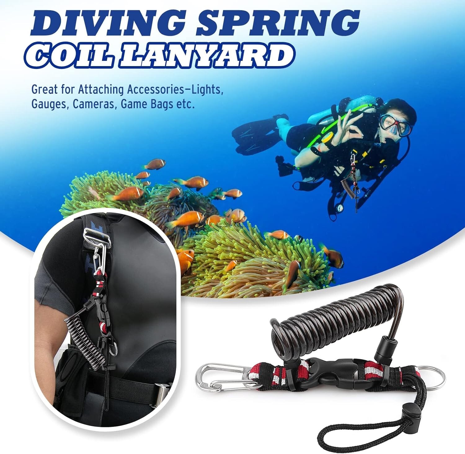 как выглядит Scuba Diving Lanyard, Heavy Duty Stainless Steel Spring Coiled Lanyard with Q... фото