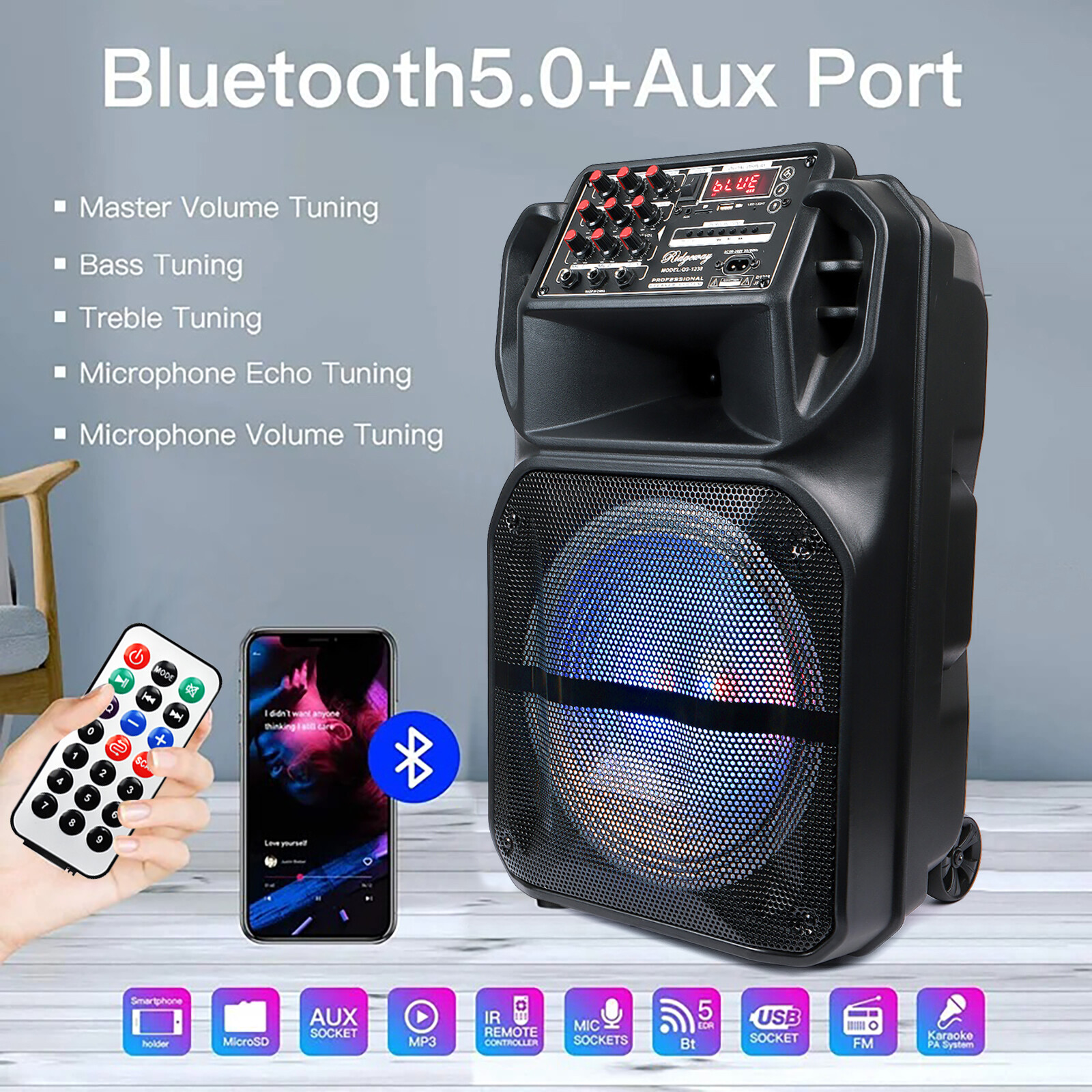 Portable 12/15'' Bluetooth Speaker Heavy Bass Sound Party Speaker FM AUX w/ Mic
