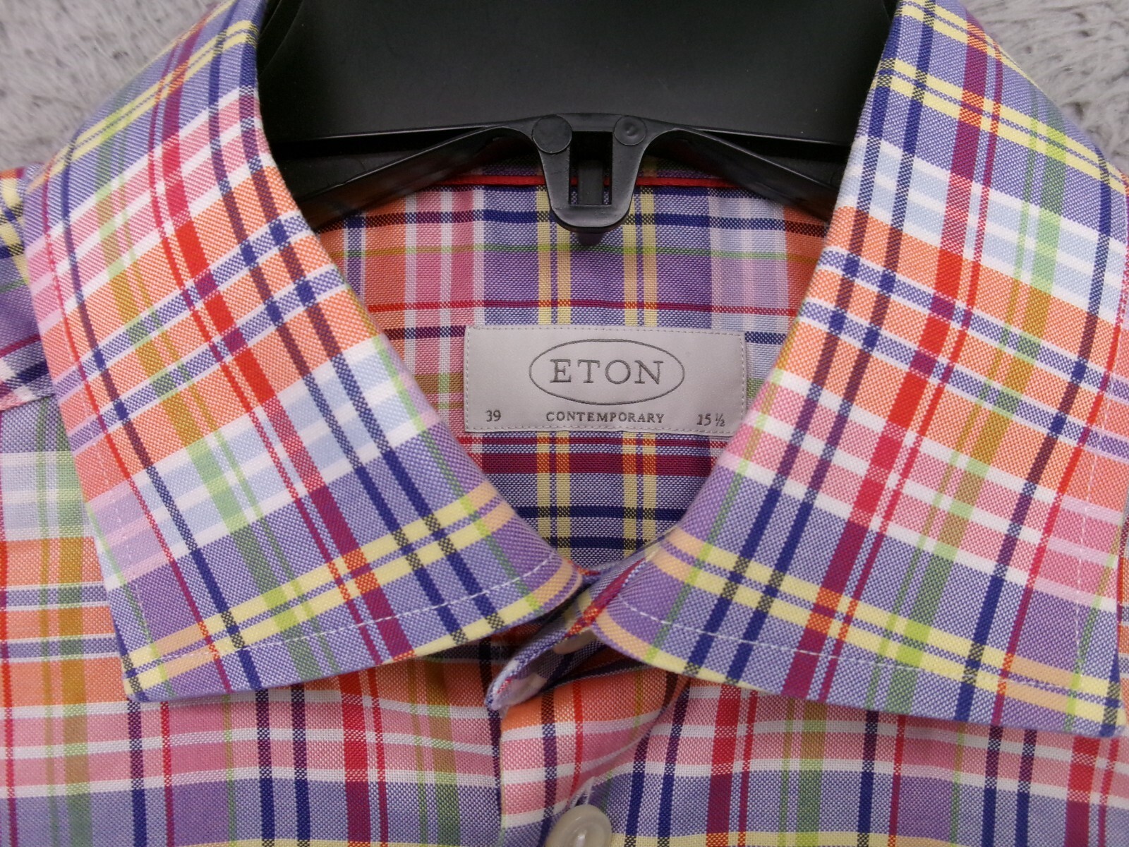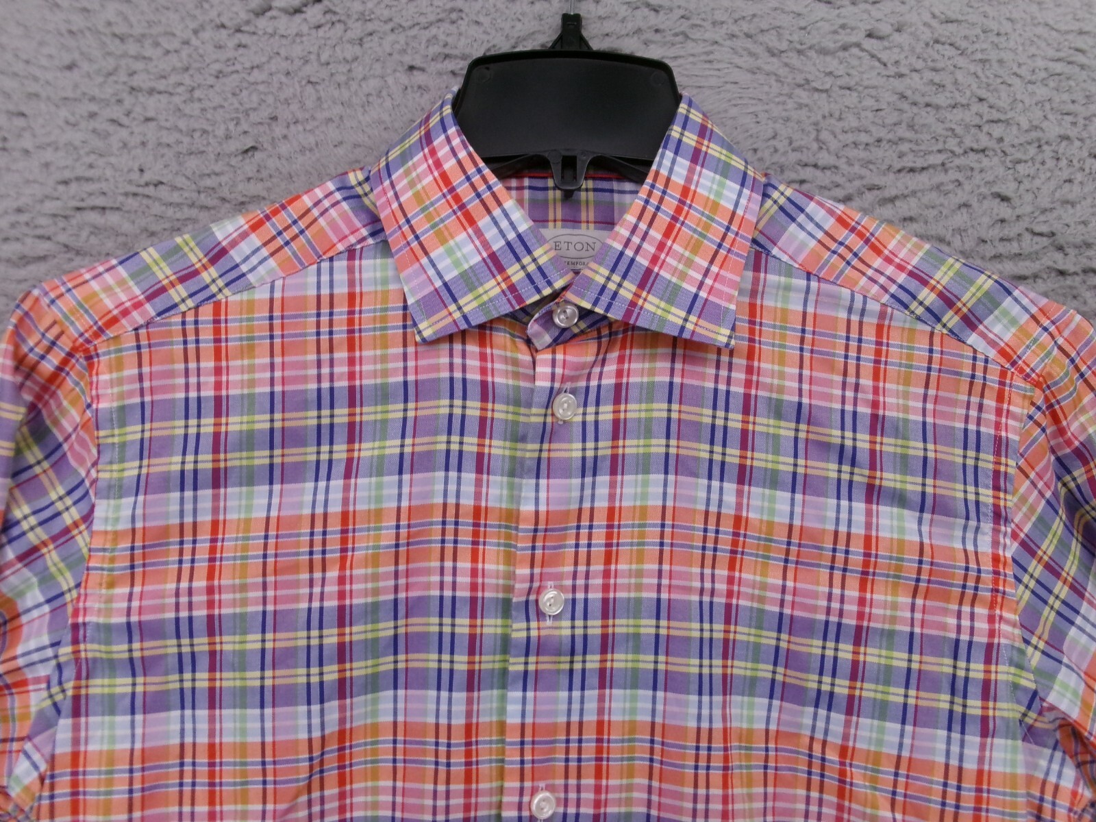Eton Dress Shirt Mens 39 15.5 Contemporany Madras Plaid Long Sleeve Cotton