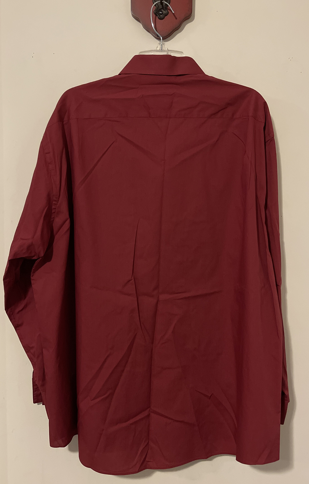 Pierre Cardin 2xl Slim-Fit Burgundy Button-Up Collared Cotton-Blend Shirt A6324
