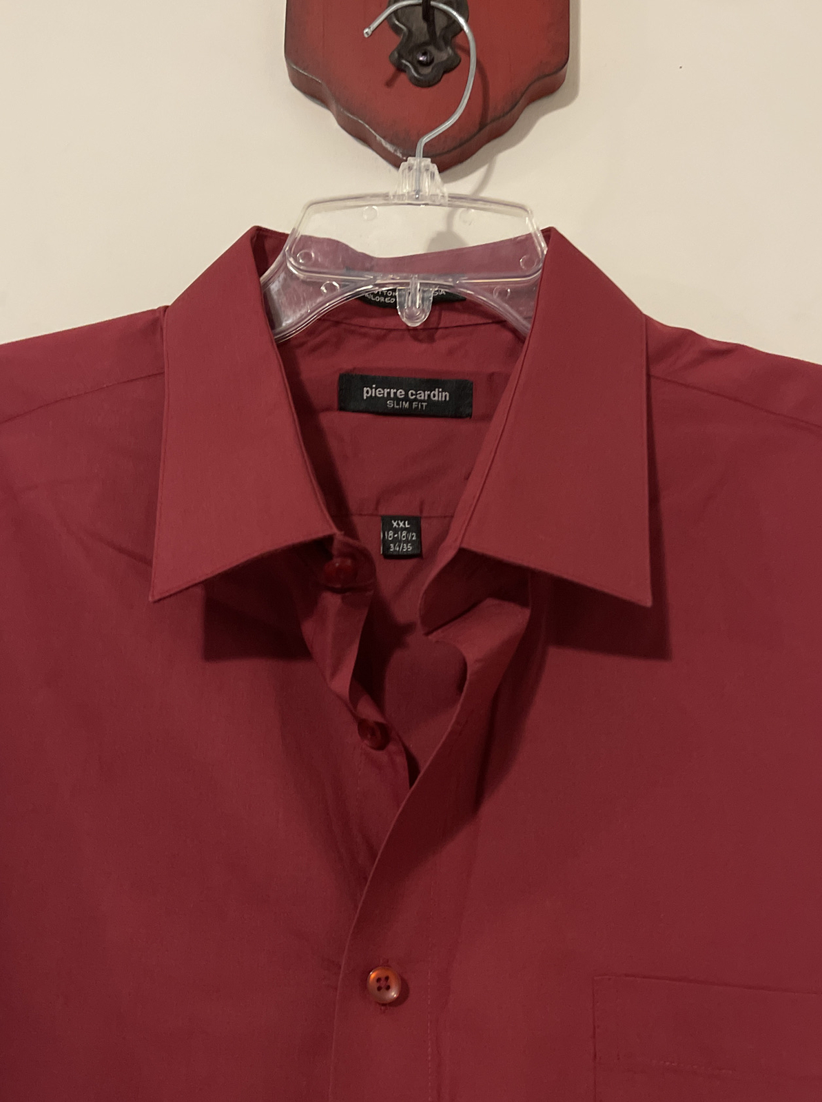 как выглядит Pierre Cardin 2xl Slim-Fit Burgundy Button-Up Collared Cotton-Blend Shirt A6324 фото