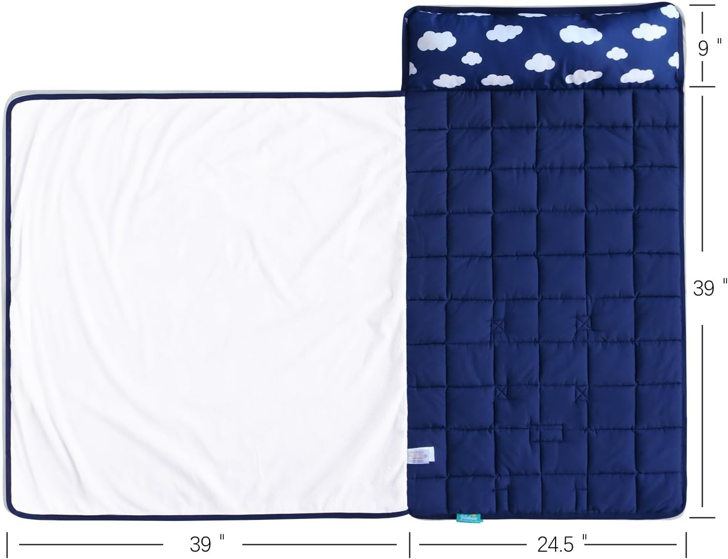 Kids Nap Mat with Soft Pillow for Preschool Sleeping/Daycare/Travel Navy