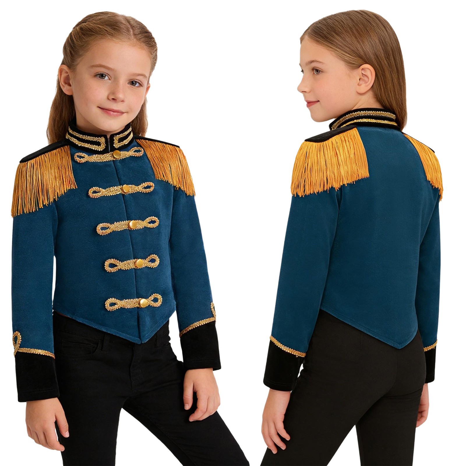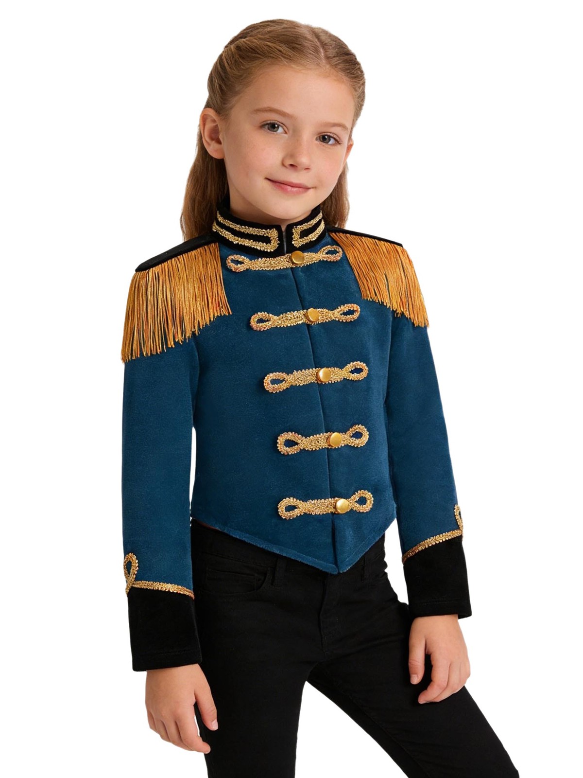 как выглядит Kids Girls Circus Ringmaster Costume Drummer Cosplay Long Sleeve Tassels Jacket фото