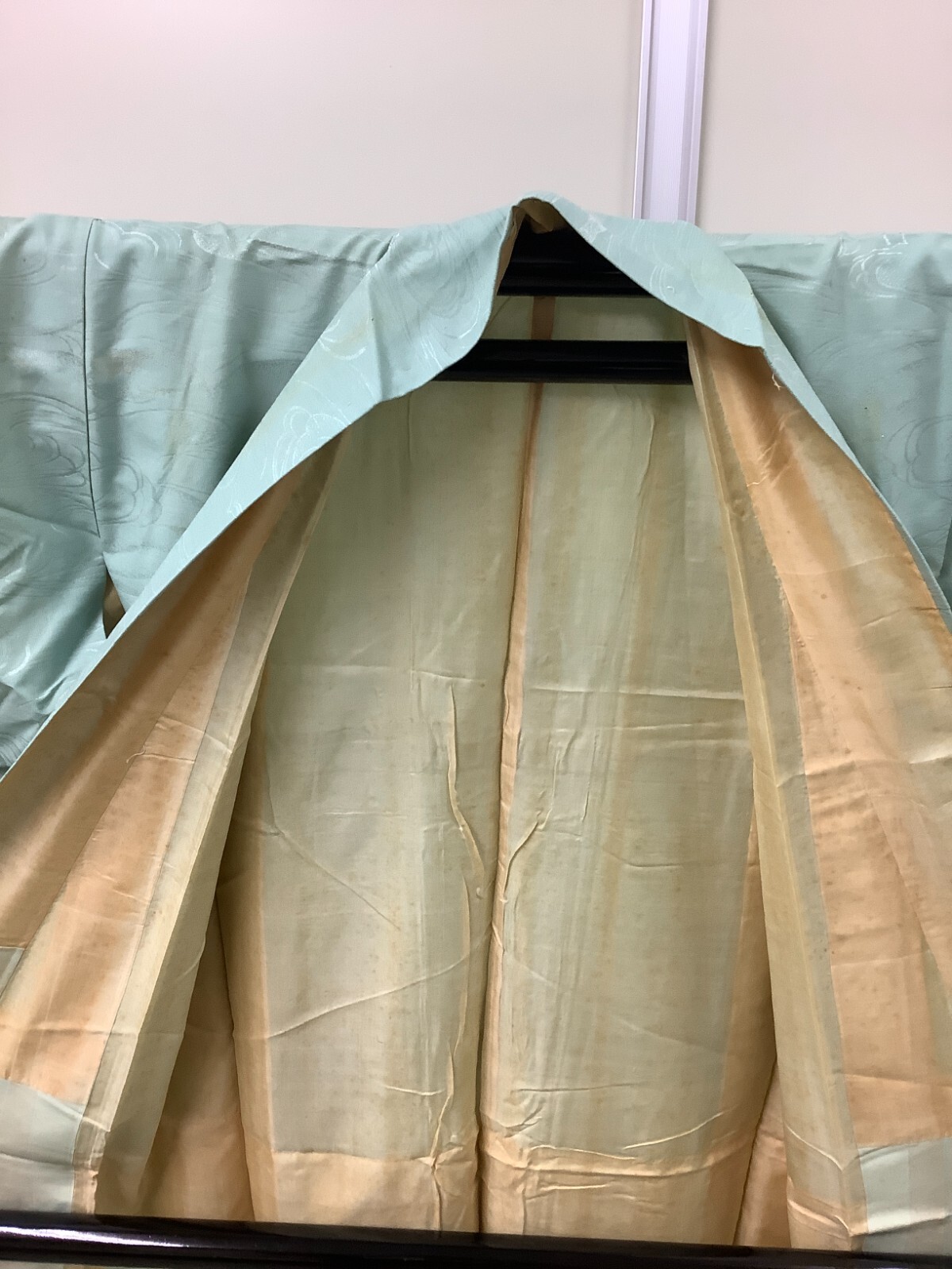 как выглядит Japanese Vintage Kimono pure silk light green dirt cloud Wind Height 57.08inch фото