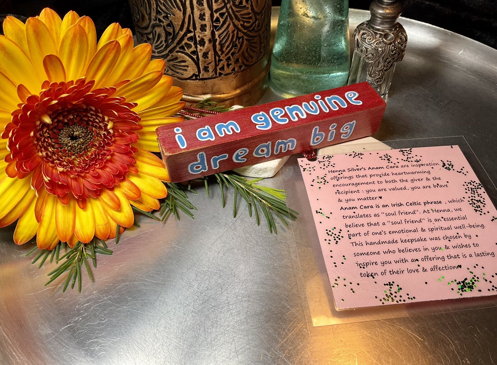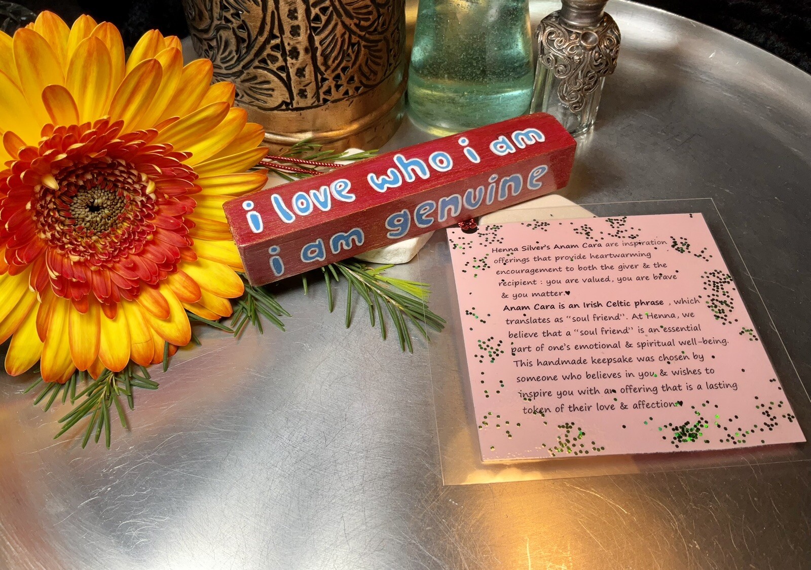 Henna Silver Handmade Painted Craft - Anam Cara Inspirational Gift