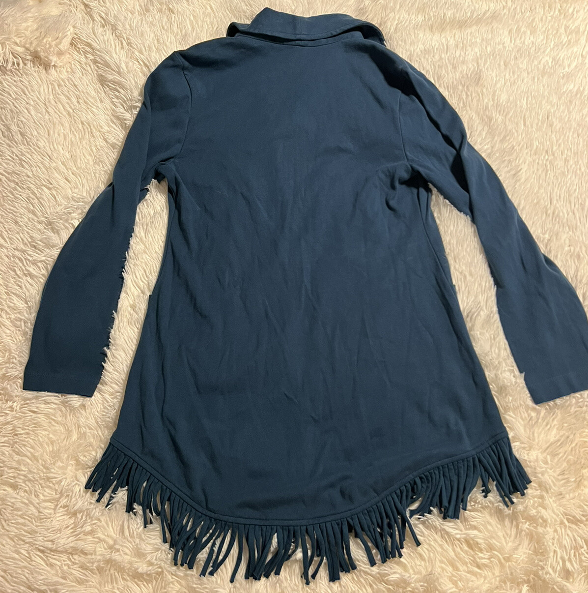 как выглядит Soft Surroundings Open Front Fringe Cozy Cardigan Sweater S фото