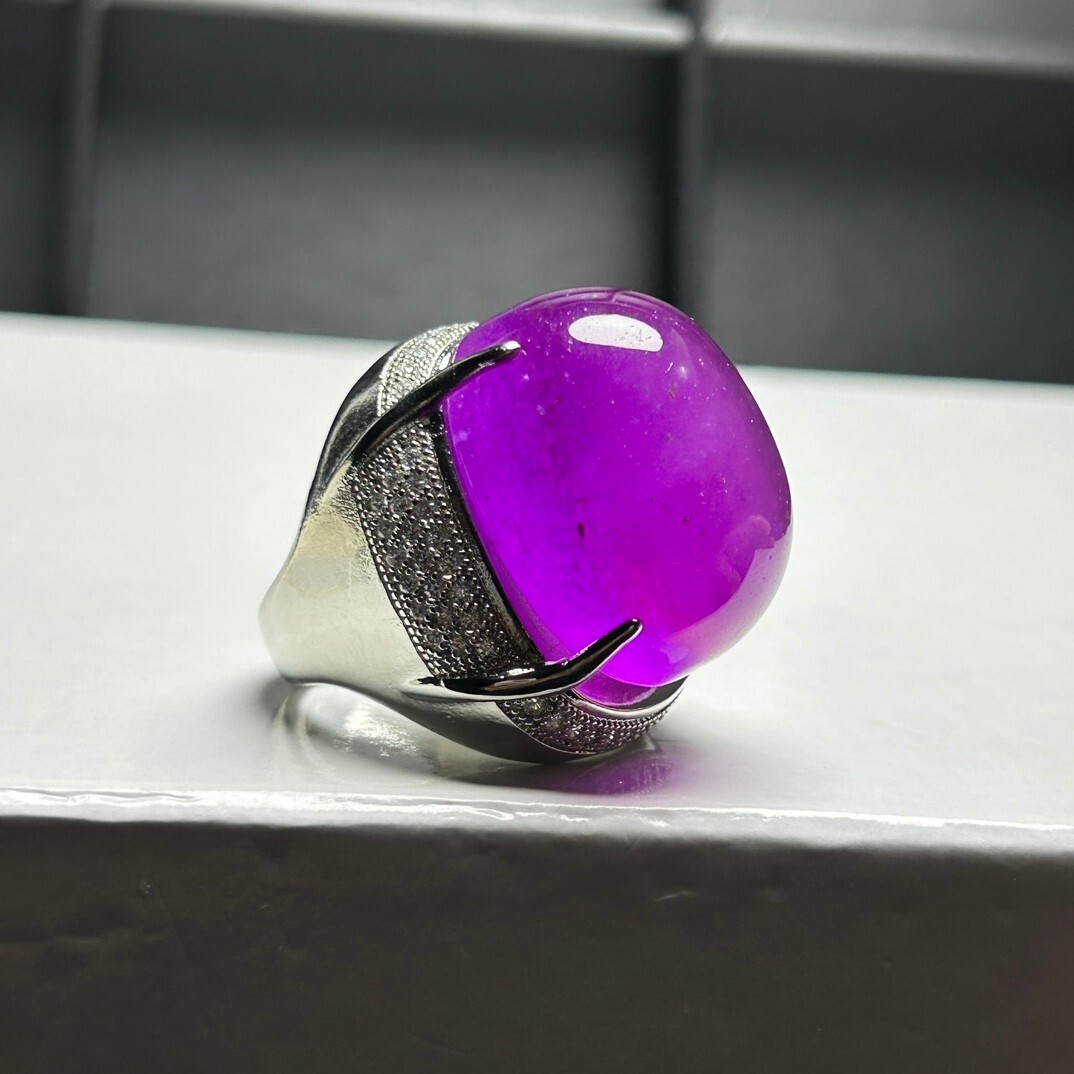 как выглядит Natural Inlay Ice Purple Burmese Jade Jadeite pigeon egg Amulet Rings фото