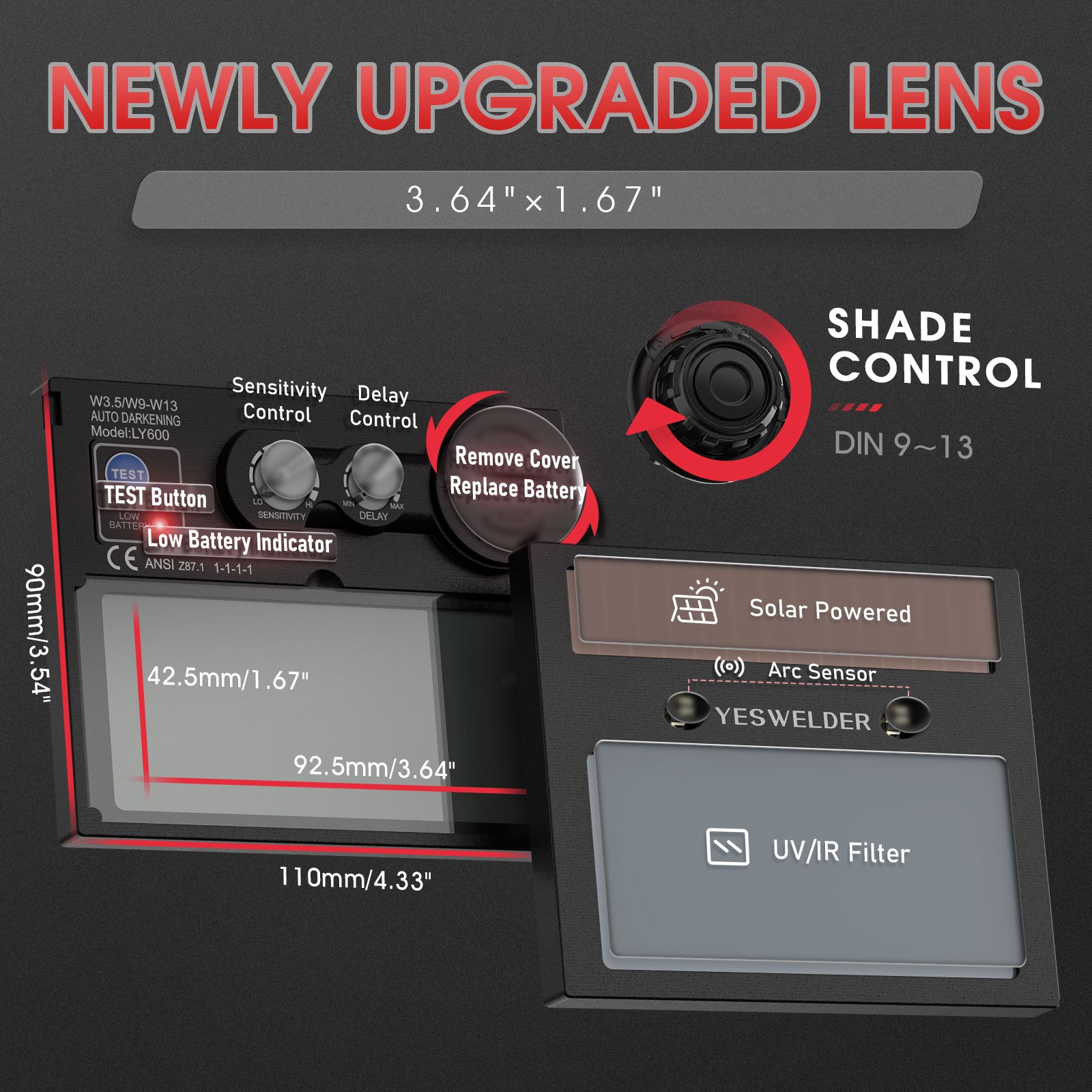 Filter/Shade: Auto Darkening Filter, Adjustable Shade Range: DIN 4, 9-13